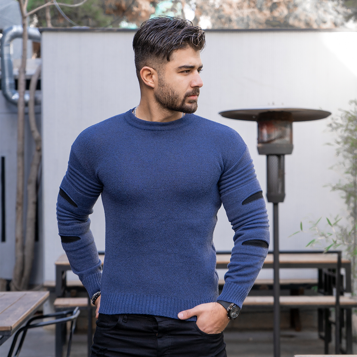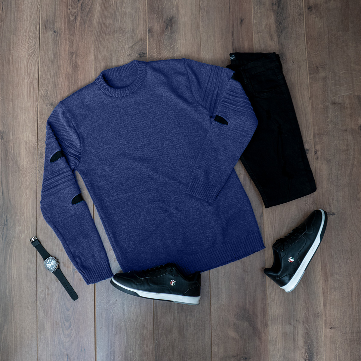 پلیور زاپ دار مردانه آبی نفتی مدل solan