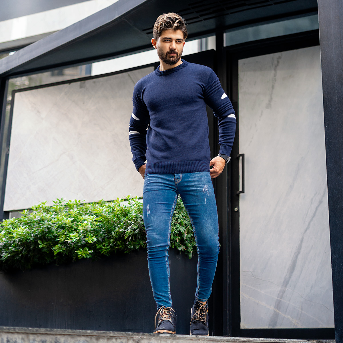پلیور زاپ دار مردانه سرمه ای مدل solan