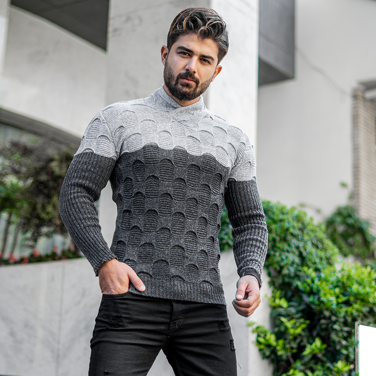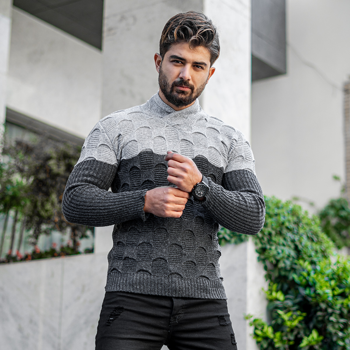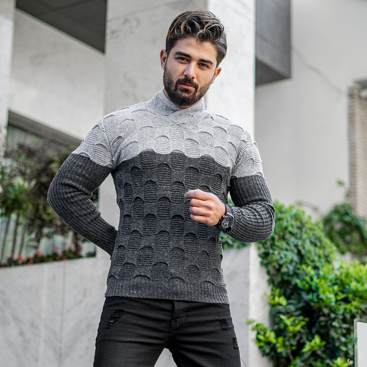 پلیور دورنگ طوسی ذغالی مردانه مدلArkia