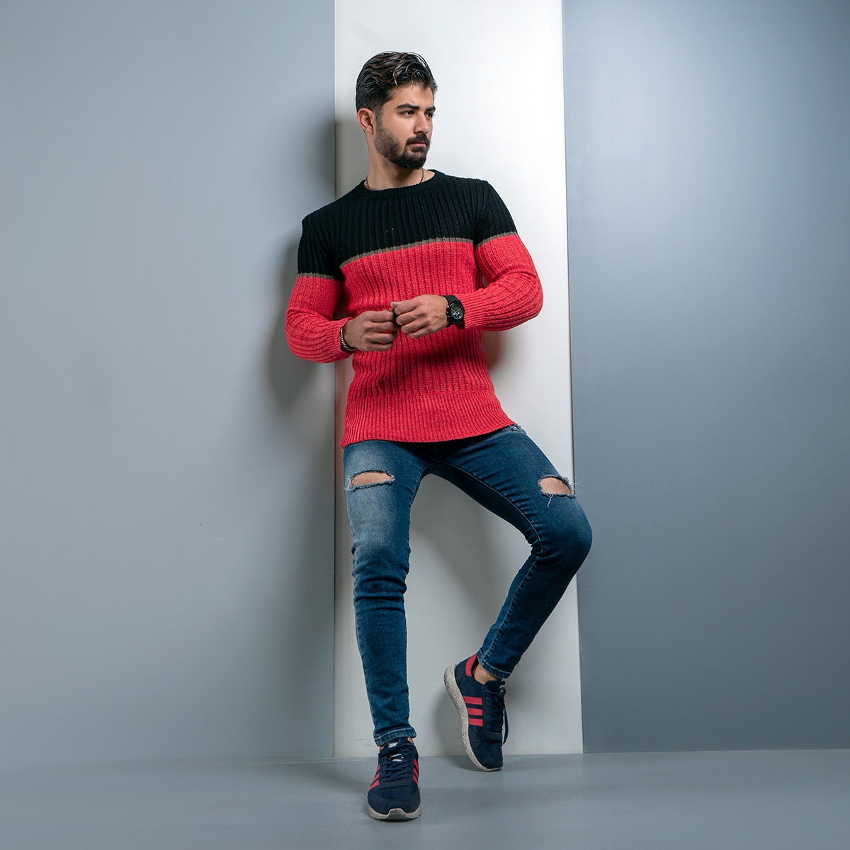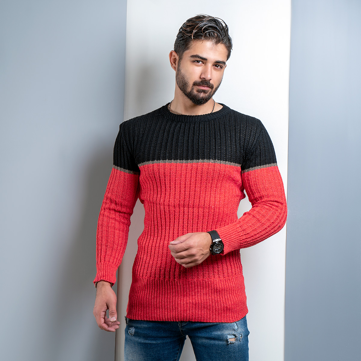 پلیور اندامی (T) صورتی مشکی مردانه مدل Adnan