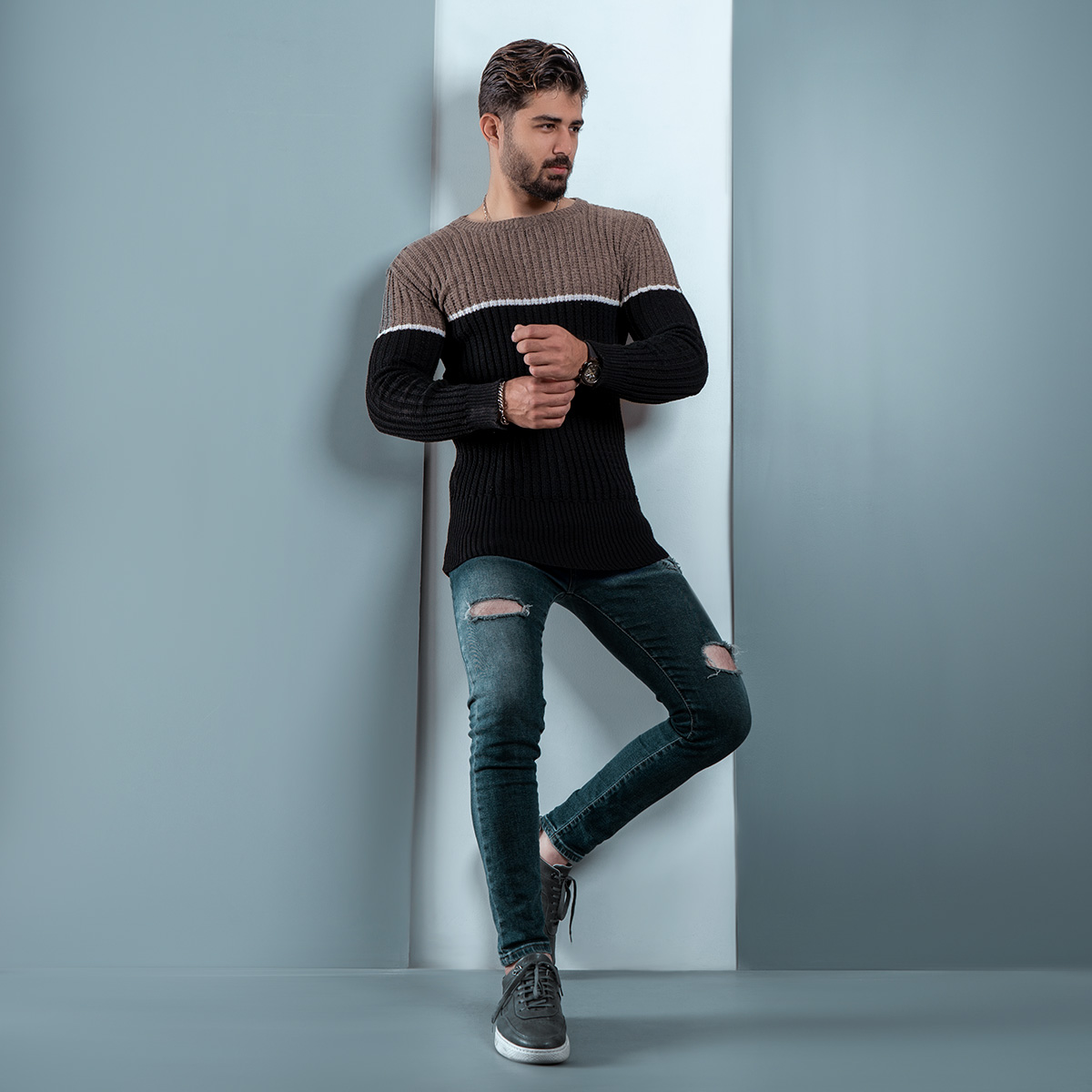 پلیور اندامی (T) مشکی کرم مردانه مدل Adnan