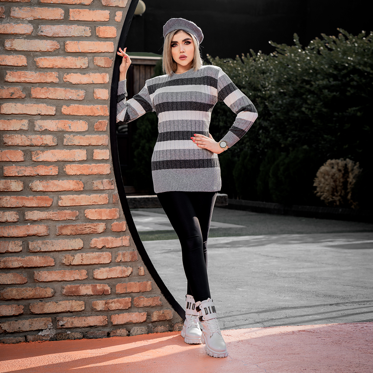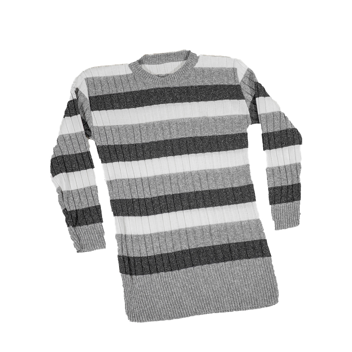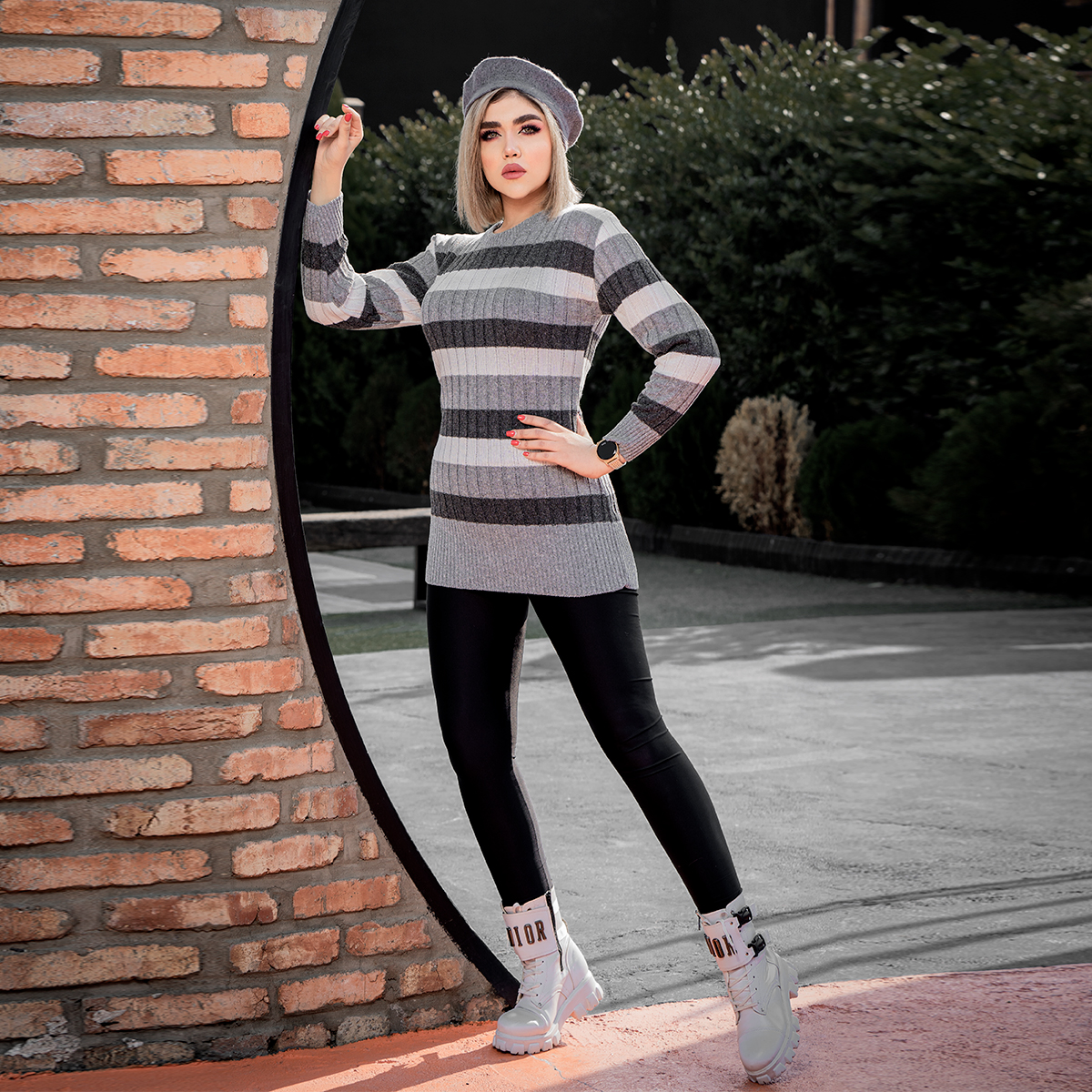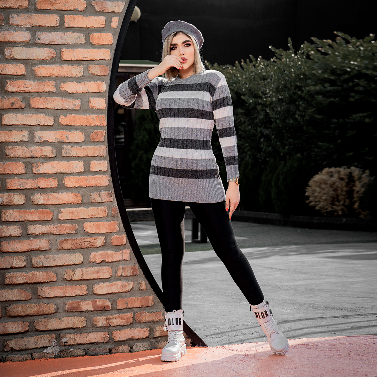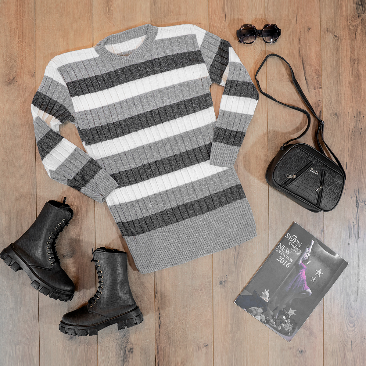 تونیک بافت زنانه راه راه طوسی مشکی مدل kareno