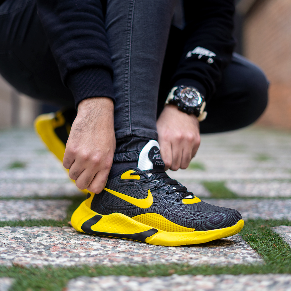 کفش ورزشی نایک مشکی زردمردانه مدلB709