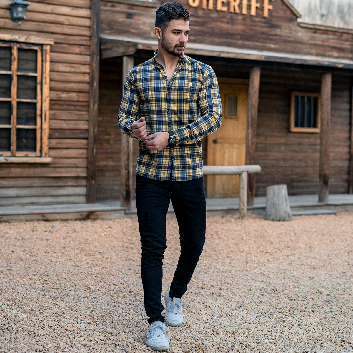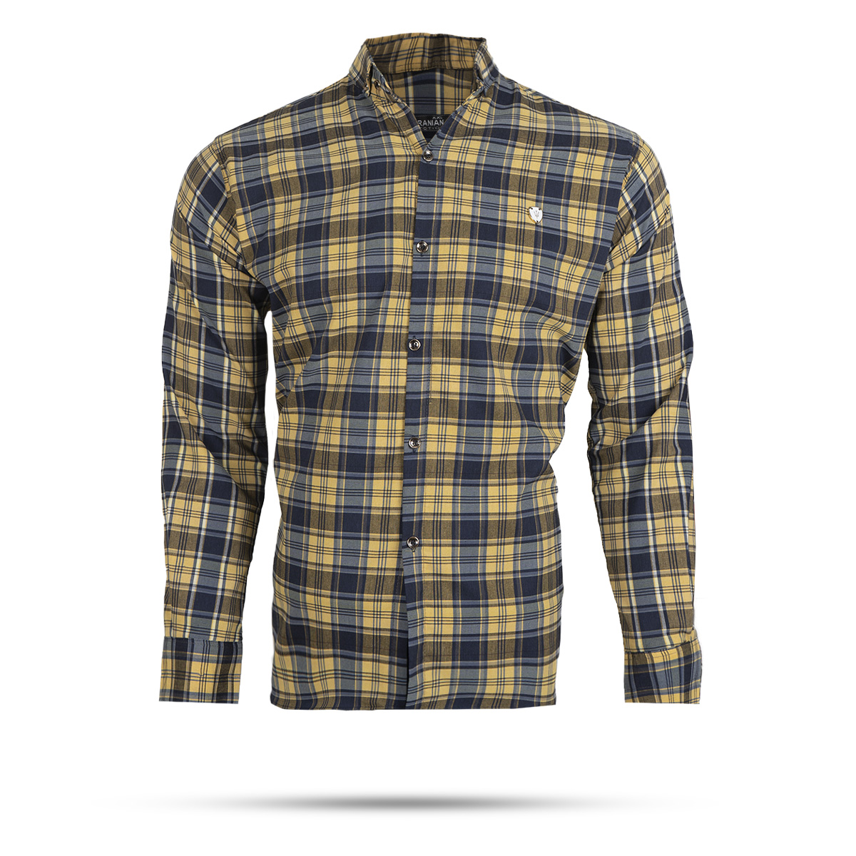 پیراهن چهارخونه سرمه ای زرد مردانه مدل katin