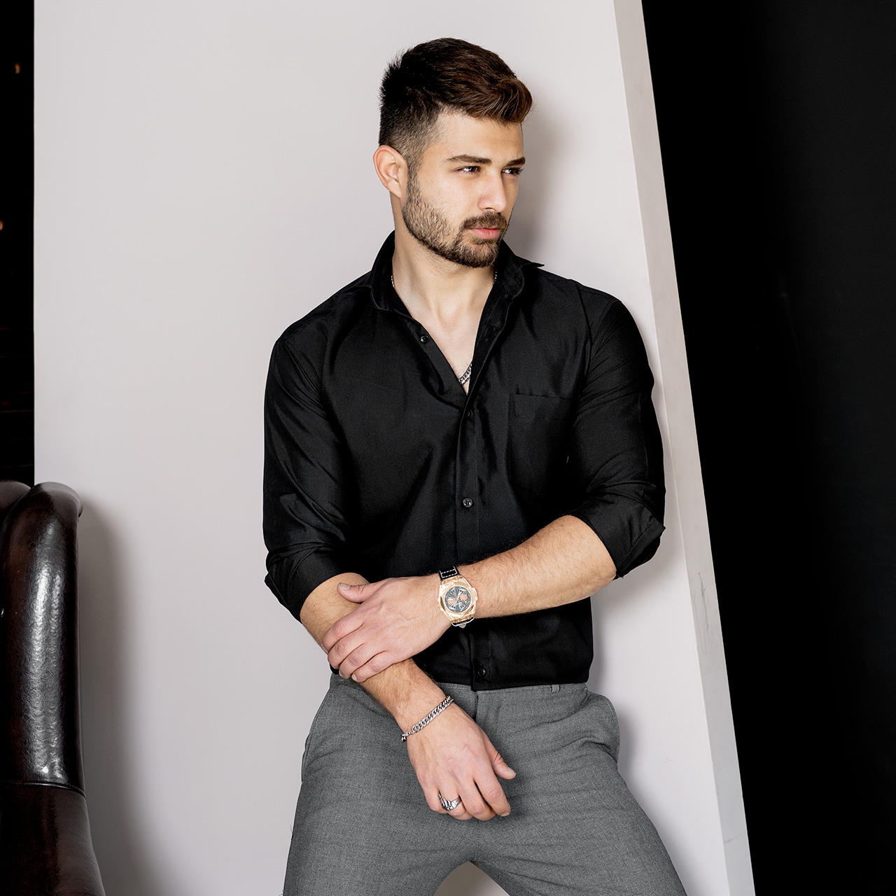 پیراهن مجلسی مردانه مشکی برای هر شرایطی، حتی مراسم عروسی، مناسب است، بنابراین اگر طرفدار پیراهن مشکی هستید، از این رنگ بدون هیچ ترسی استفاده کنید.