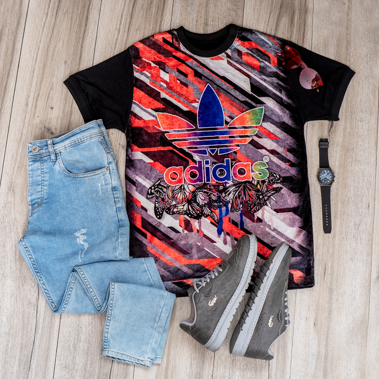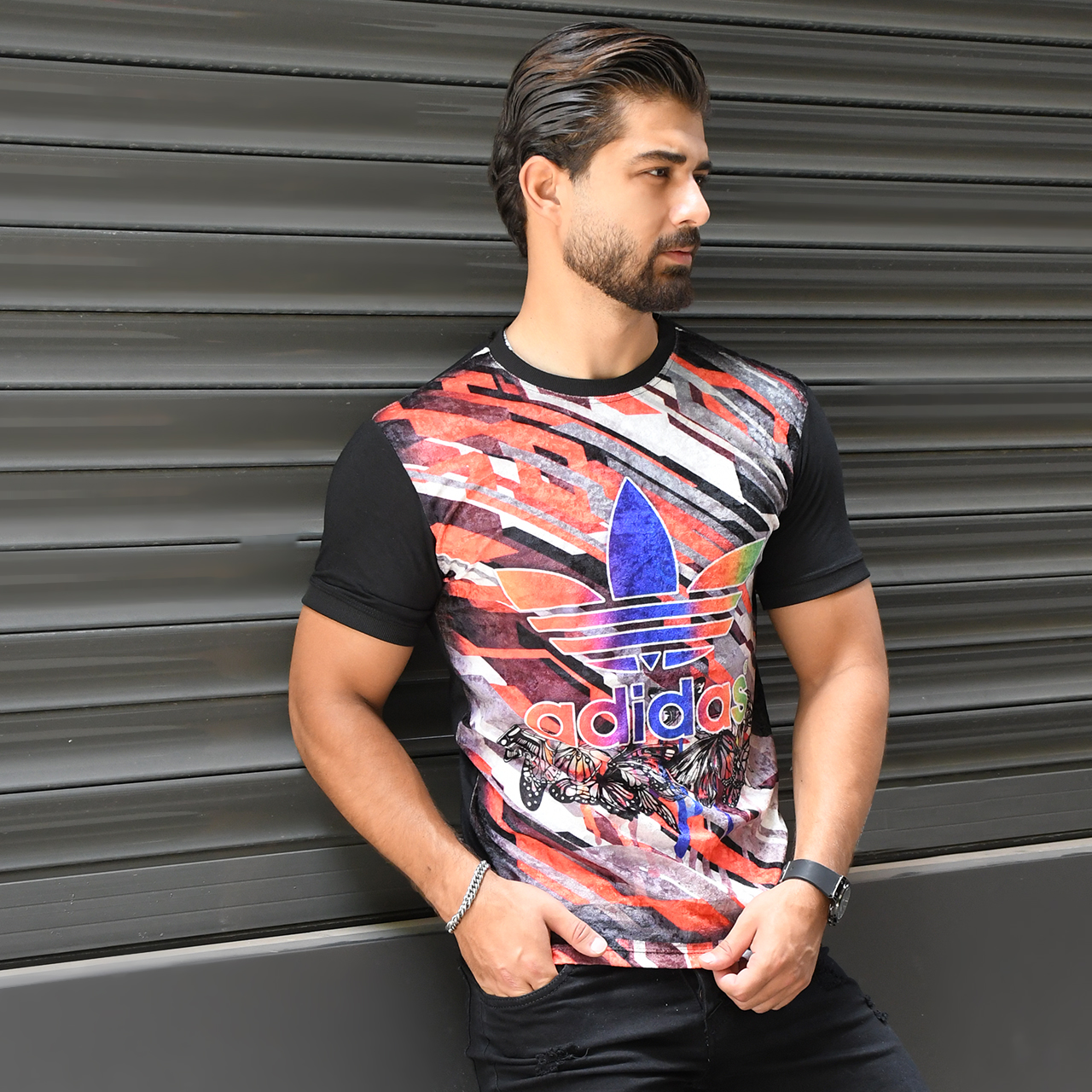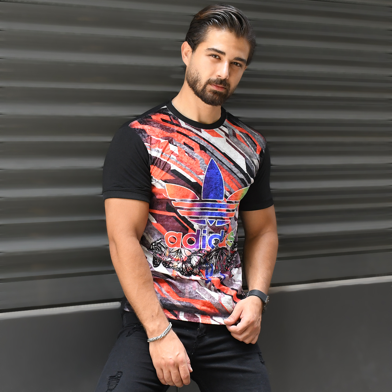 تیشرت مخمل مردانه آدیداس طرح پروانه مدل L102