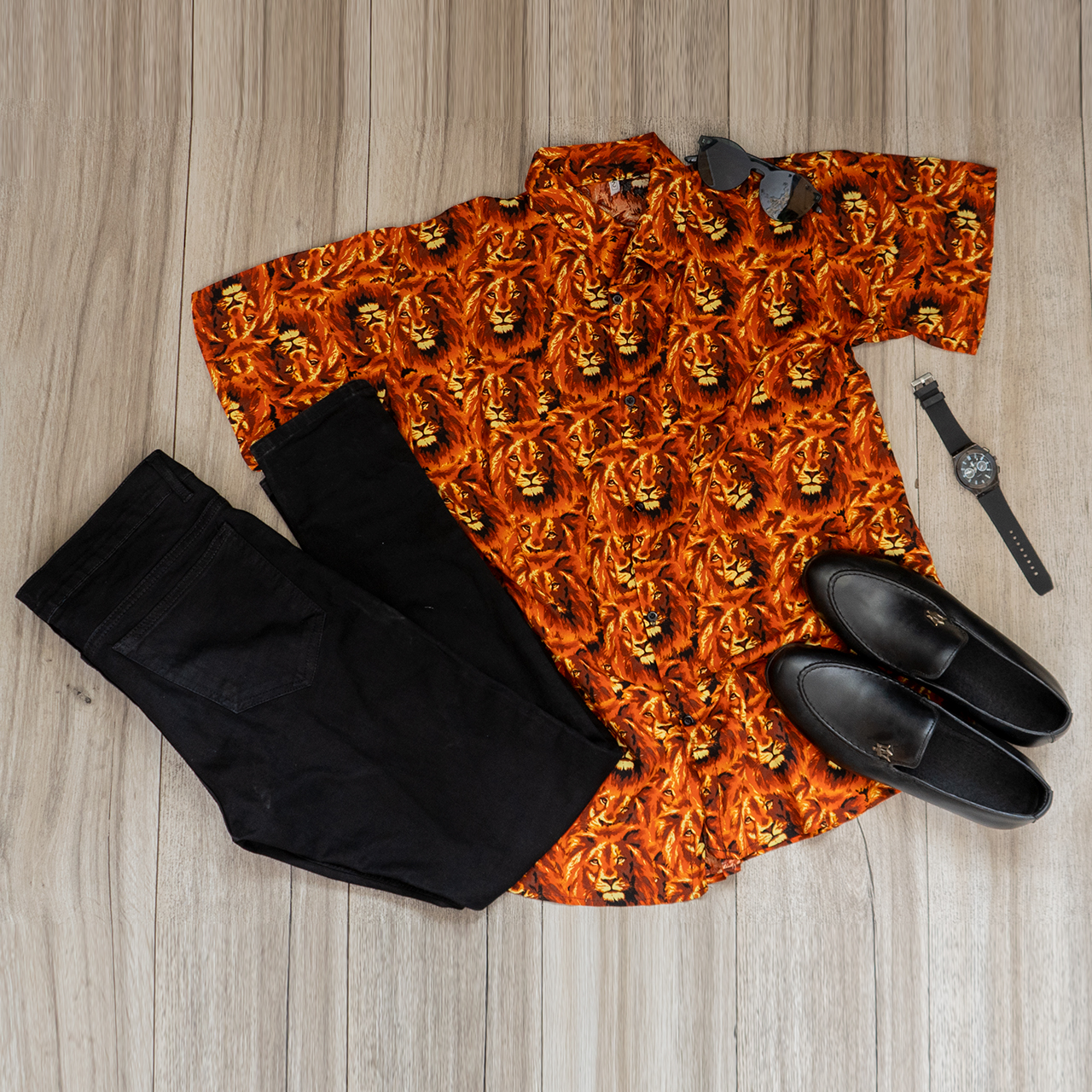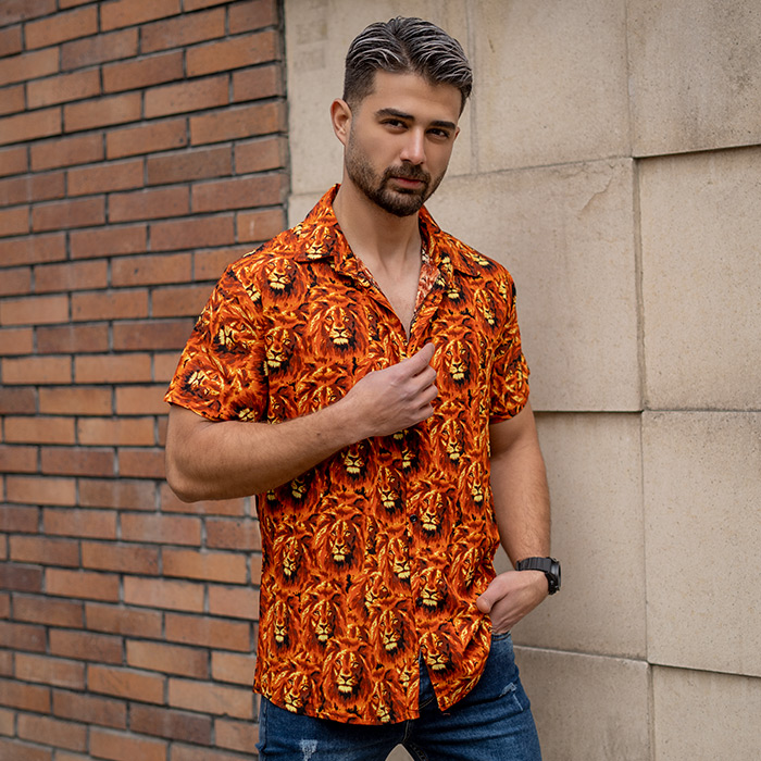 پیراهن هاوایی طرح شیر نارنجی مردانه مدل P11
