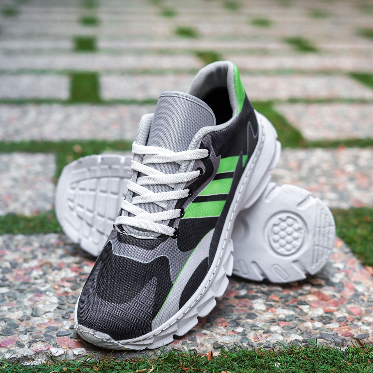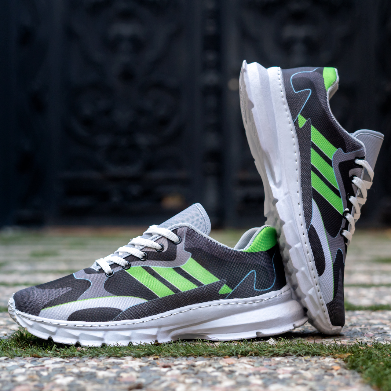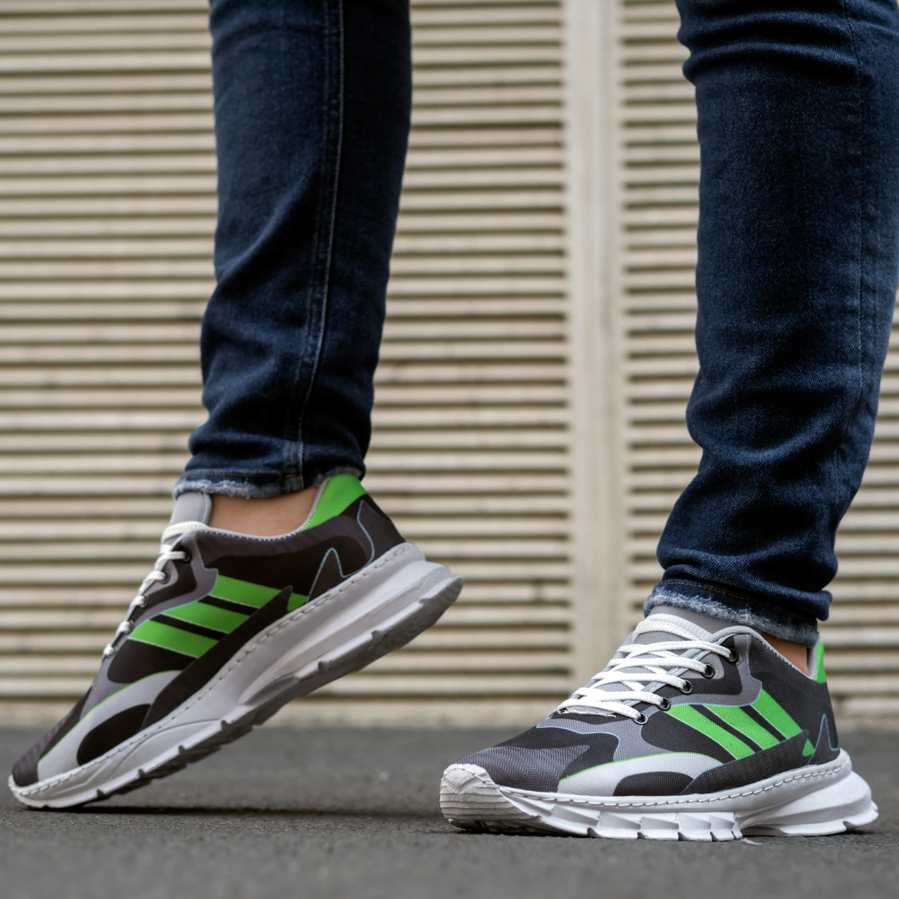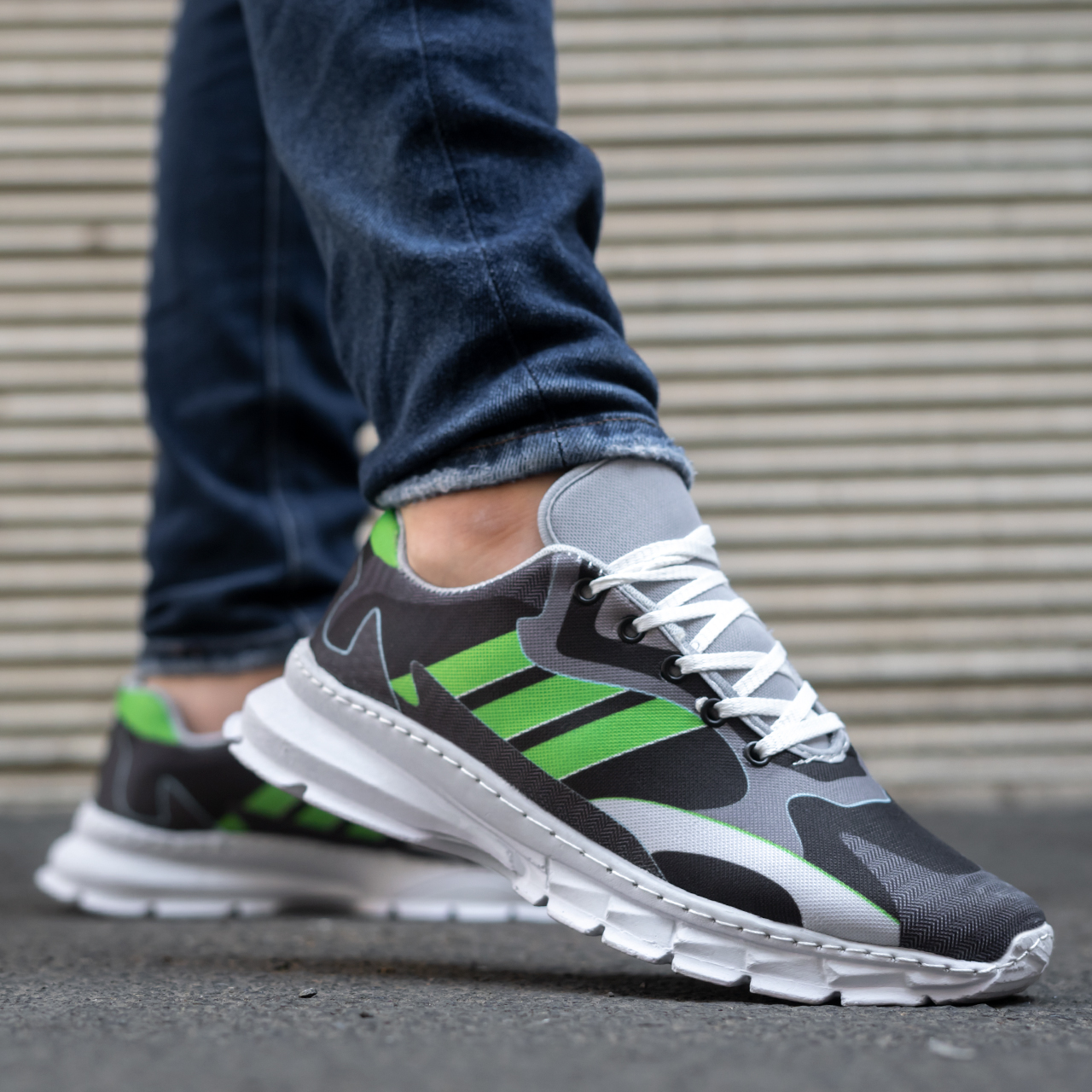 کفش ورزشی خاکستری سه خط سبز مردانه مدل E98