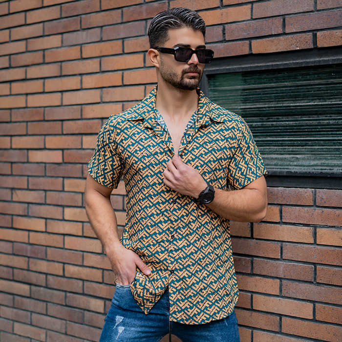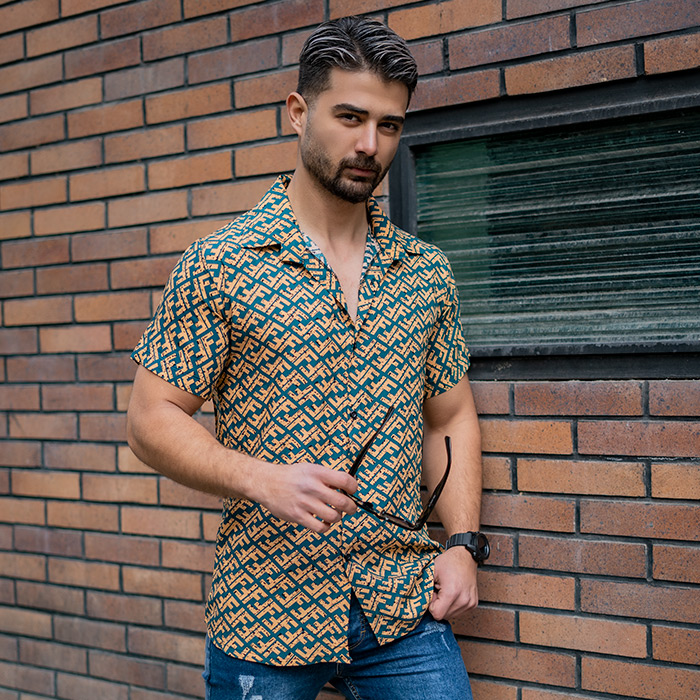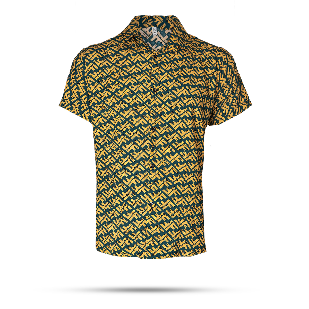 پیراهن هاوایی طرح فندی زرد مردانه مدل F82
