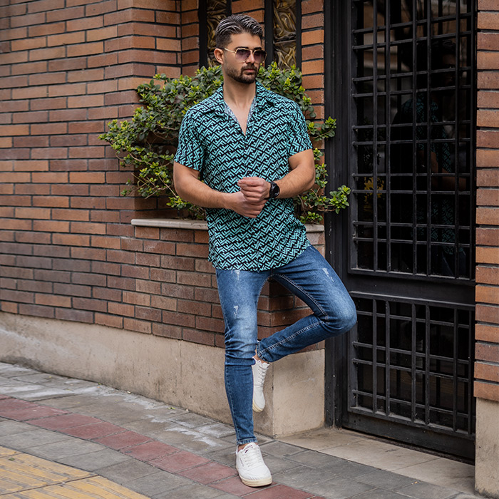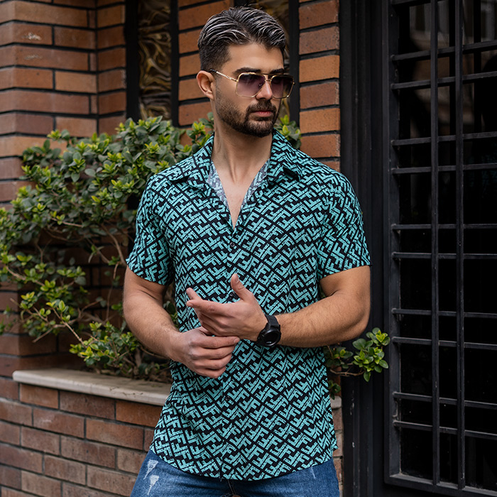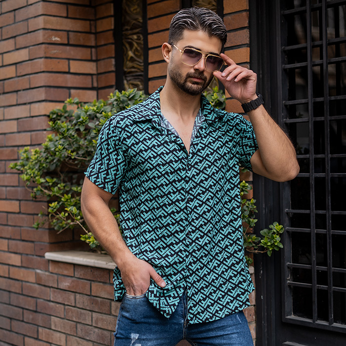 پیراهن هاوایی طرح فندی سبز مردانه مدل F82