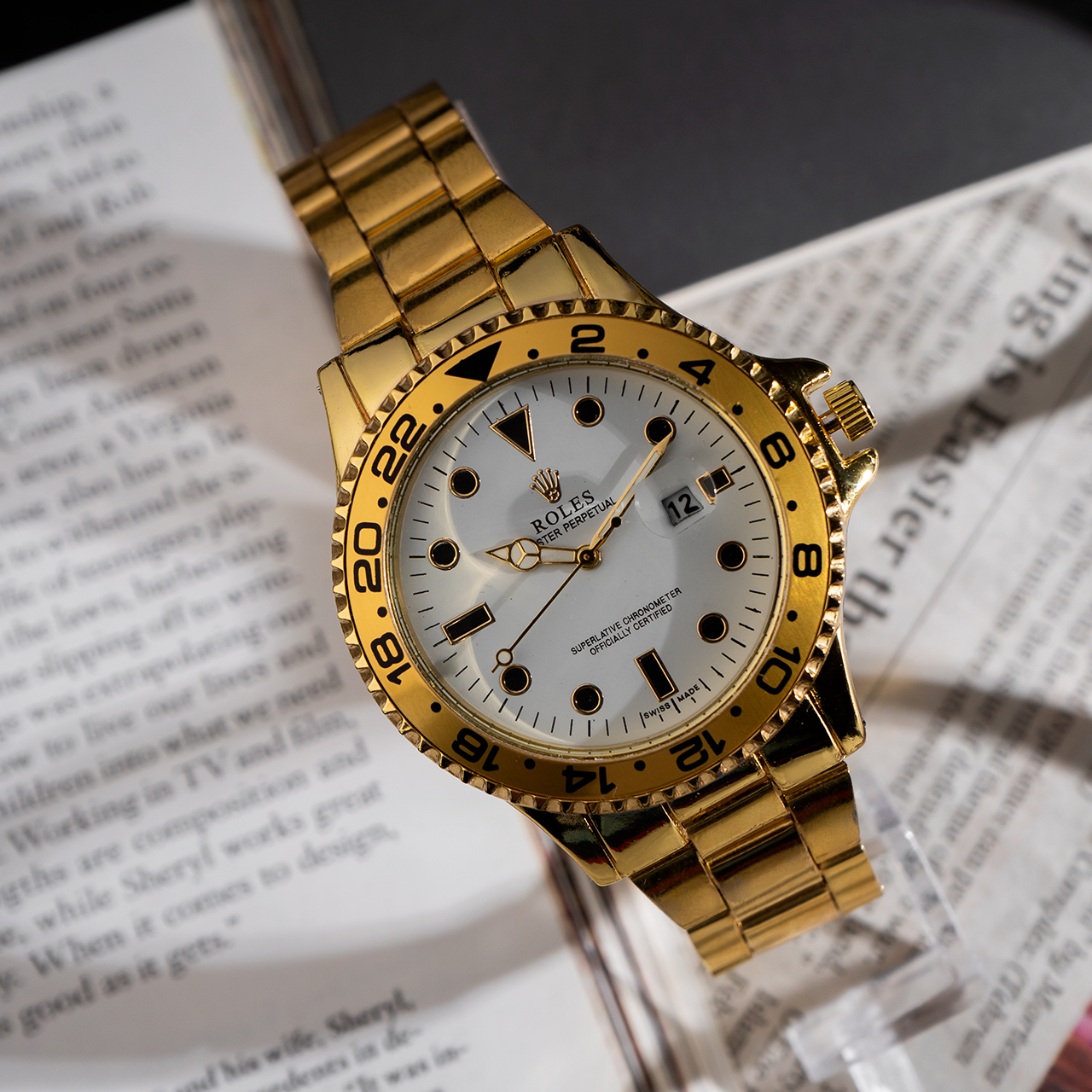 ساعت رولکس طلایی صفحه سفیدمردانه مدل 435