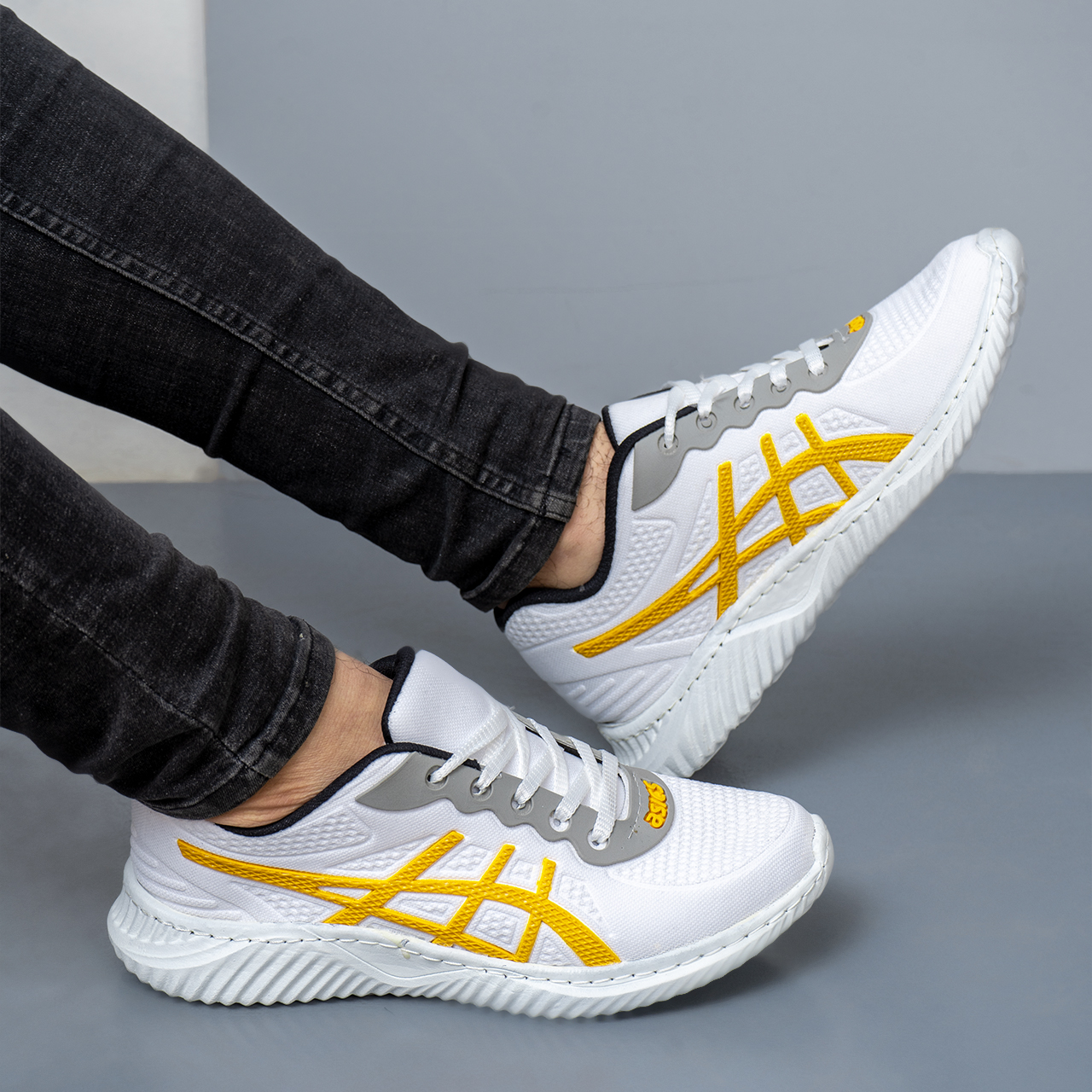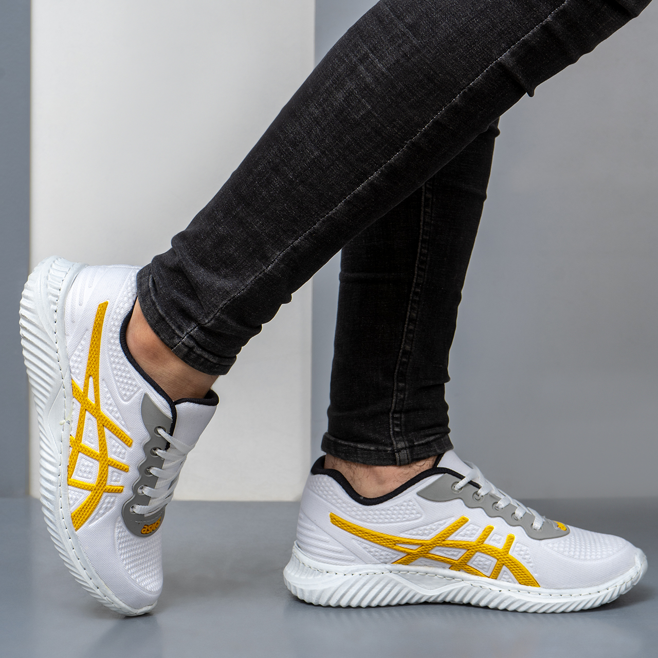 کفش ورزشی مردانه سفید زرد اسیکس(T) مدل E33