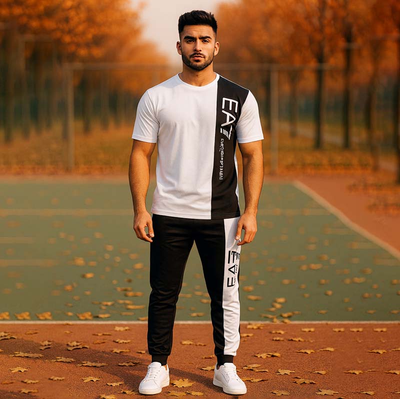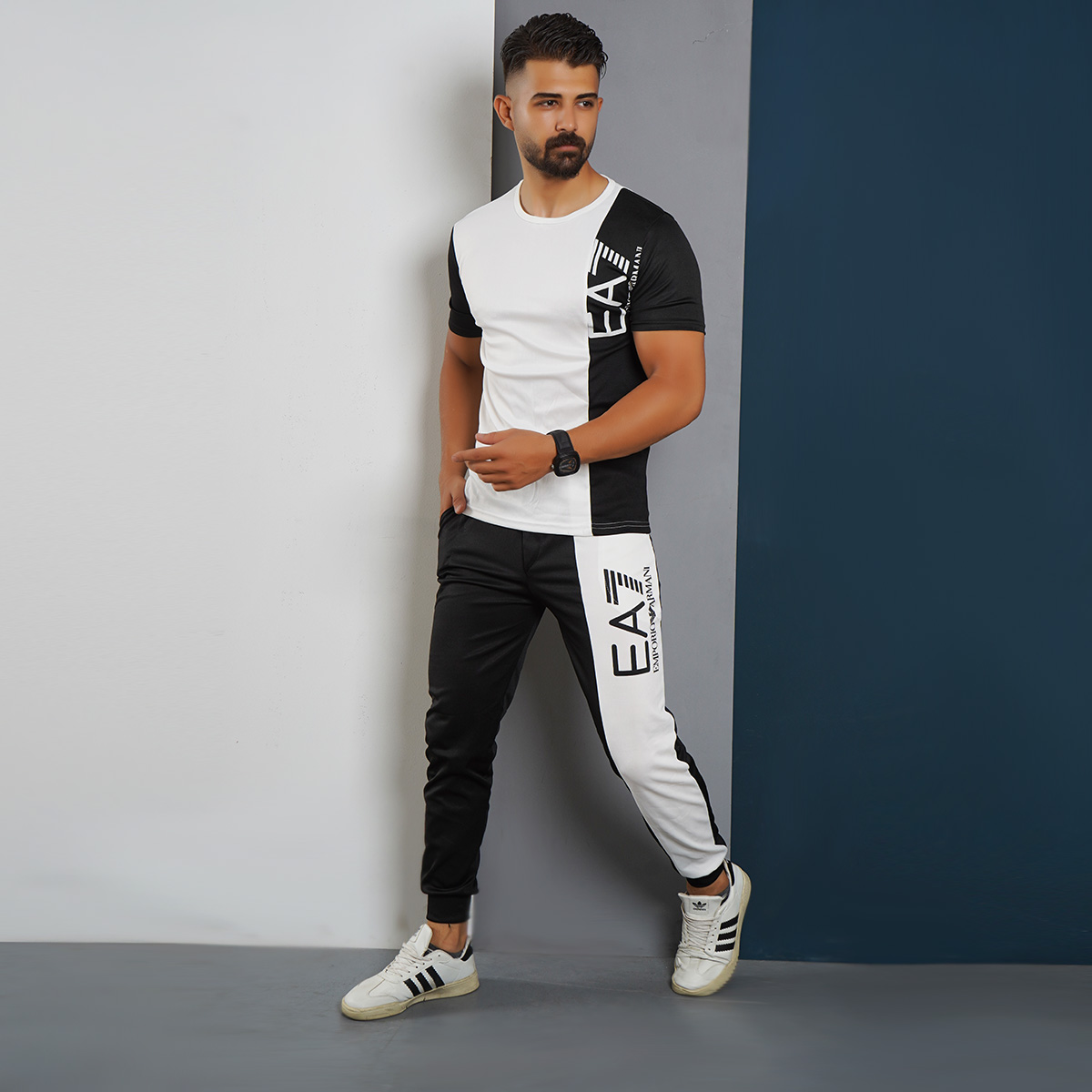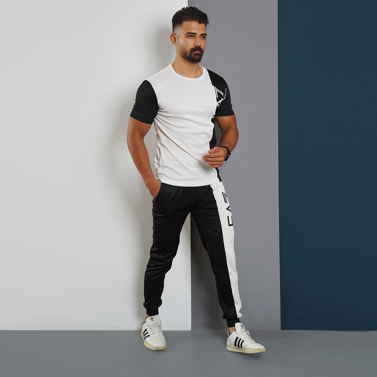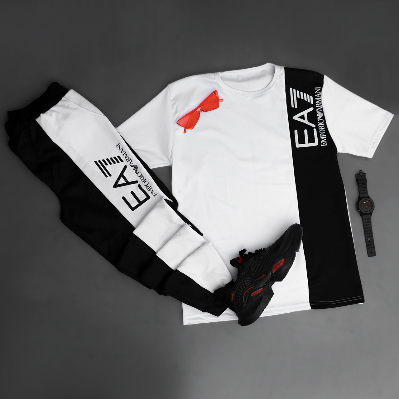 ست تیشرت شلوار EA7 سفید مشکی مدلWE82