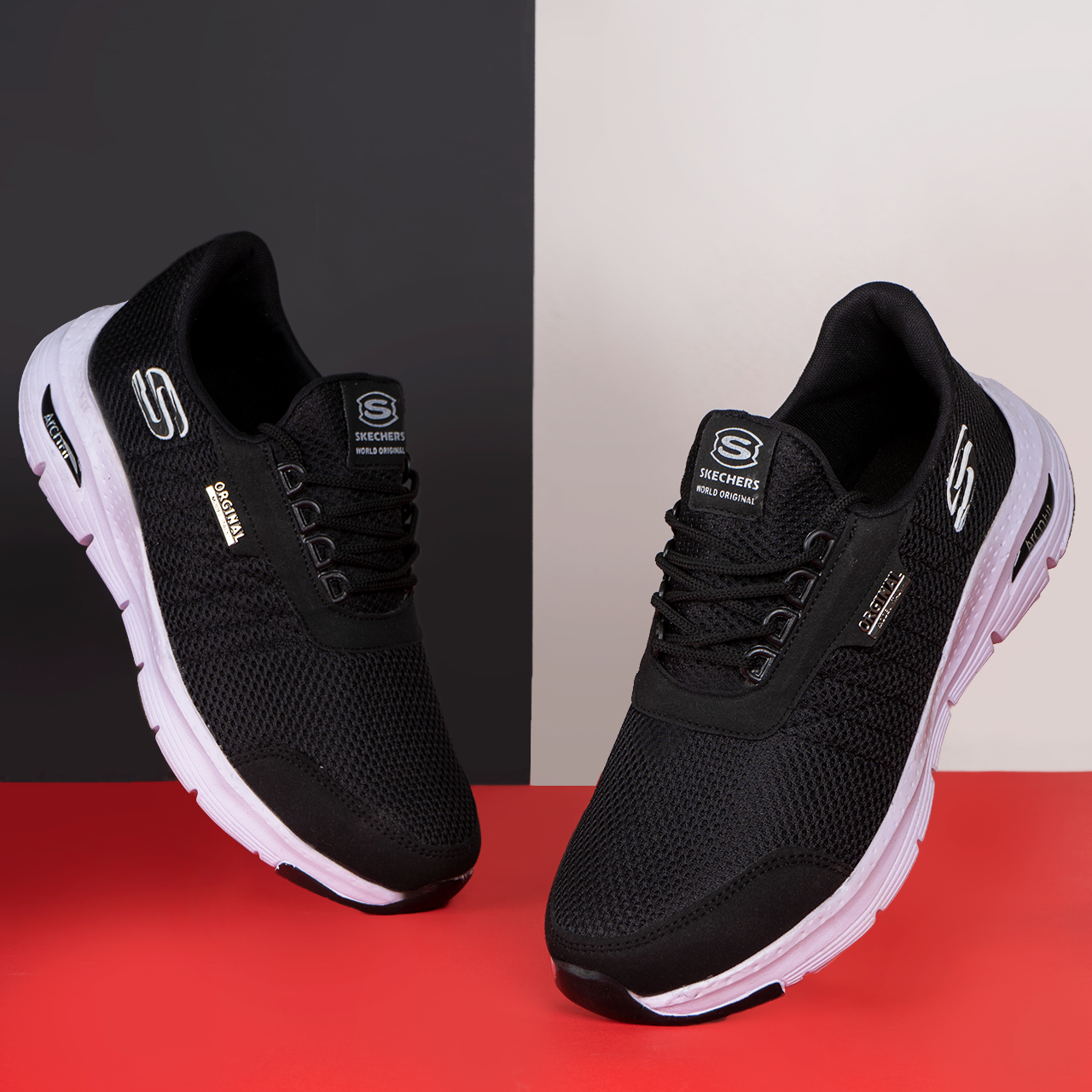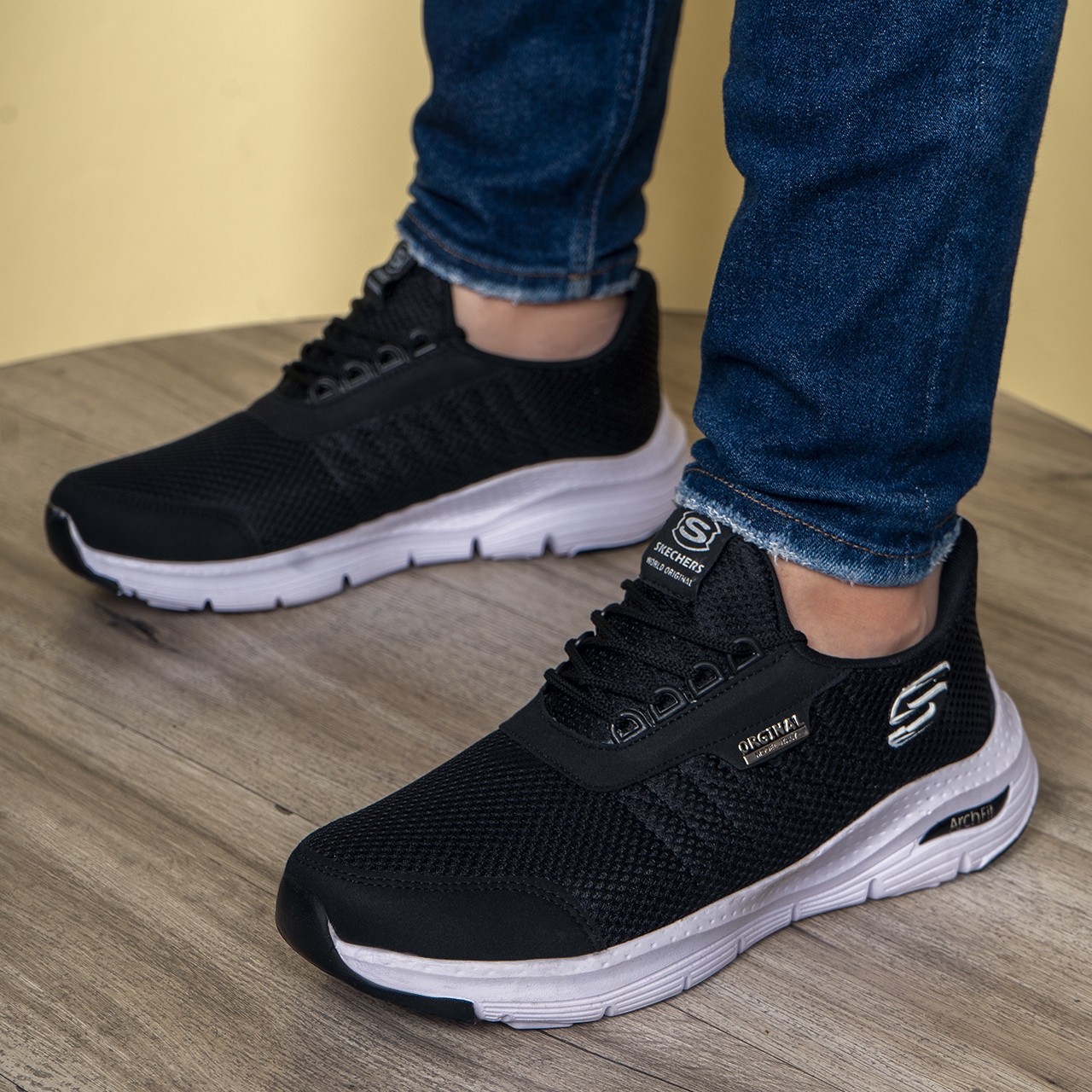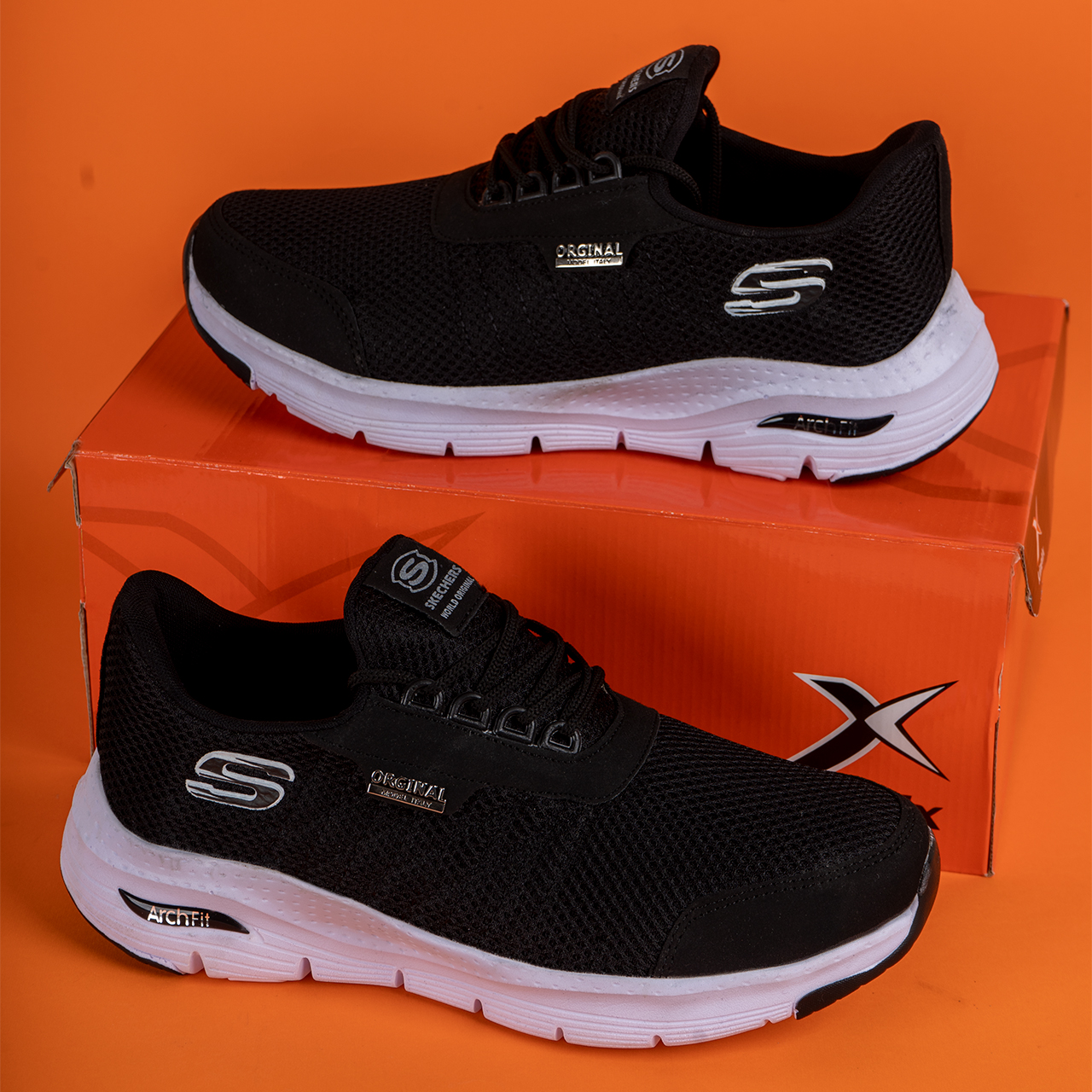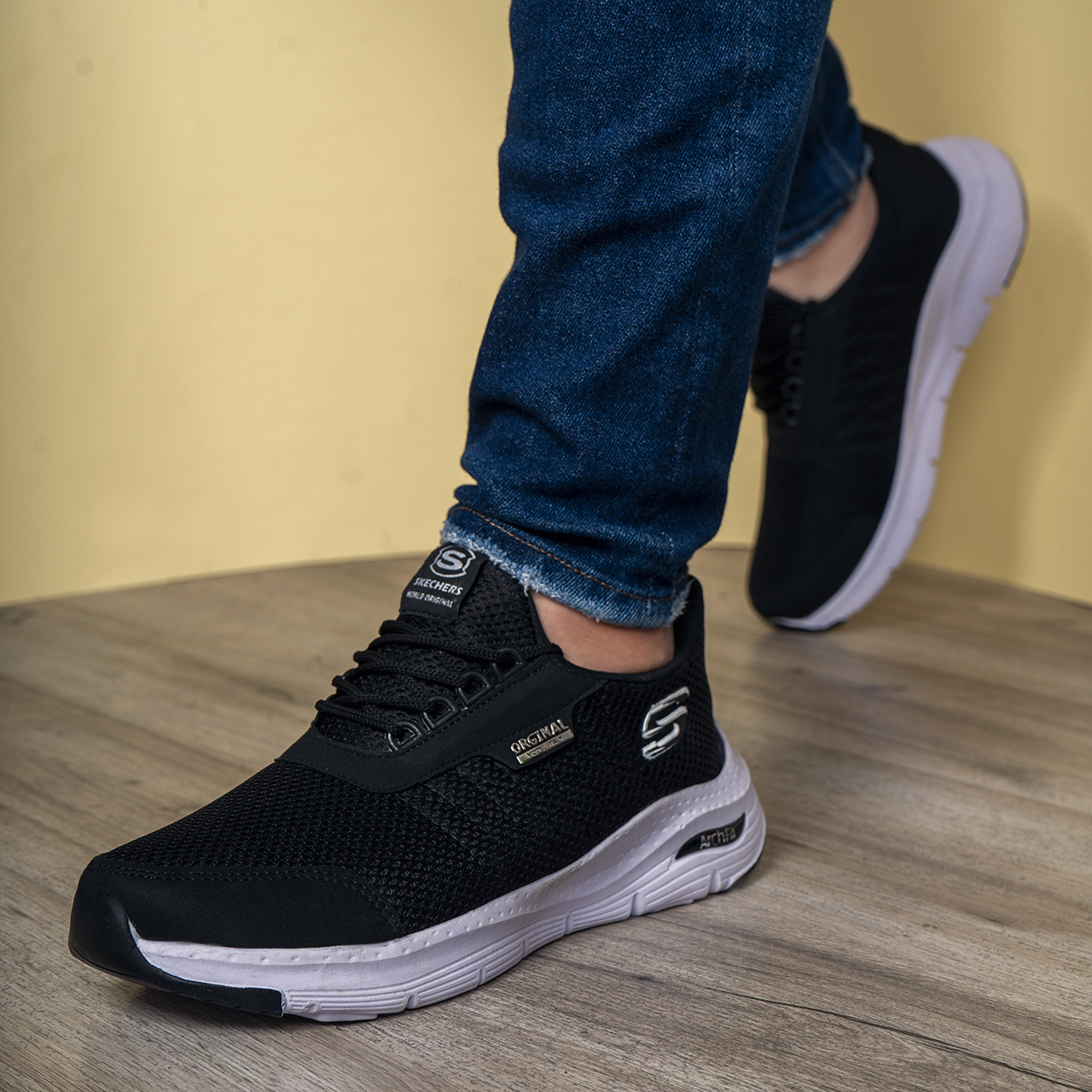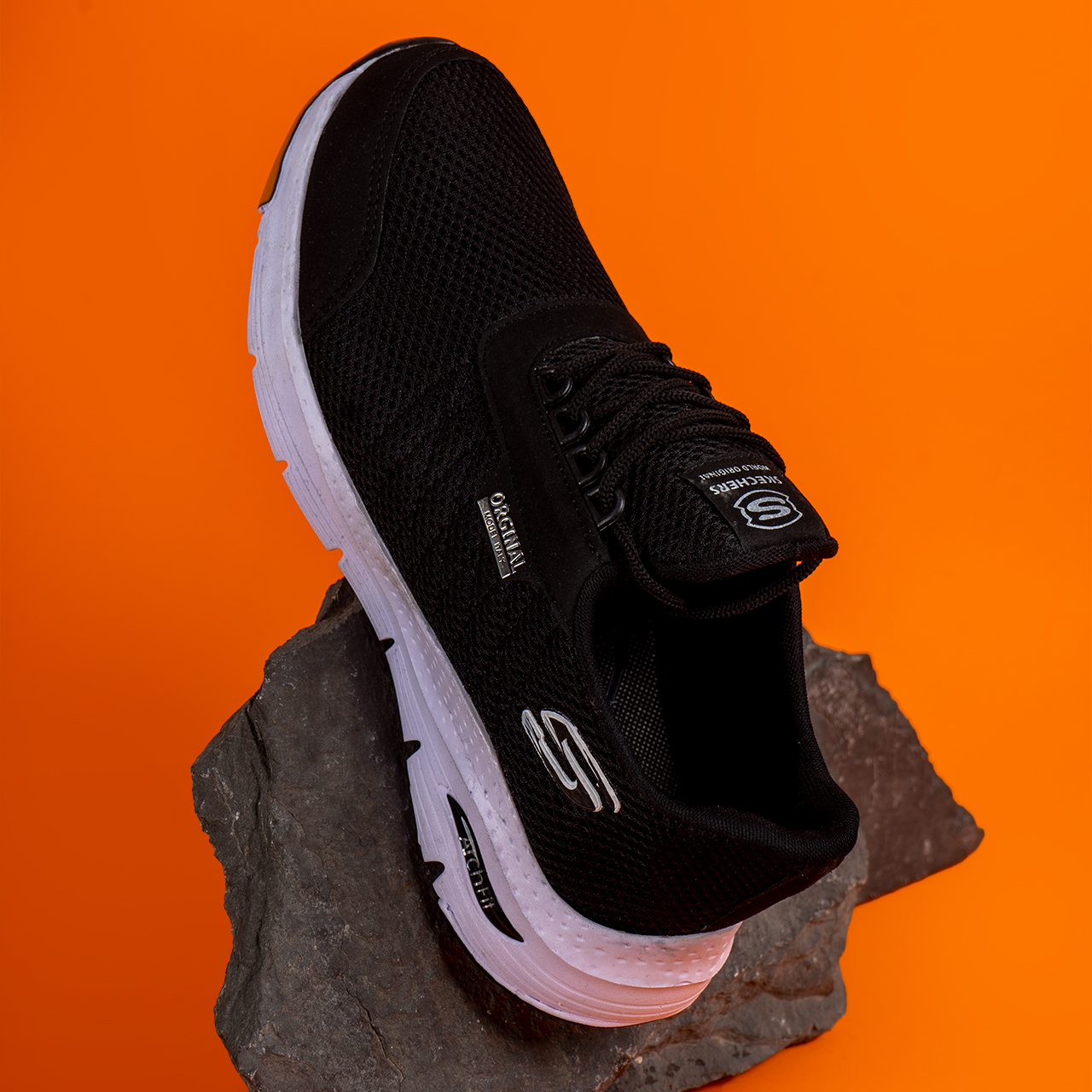 کفش اسکیجرزمردانه مشکی زیره سفید مدل zigzag