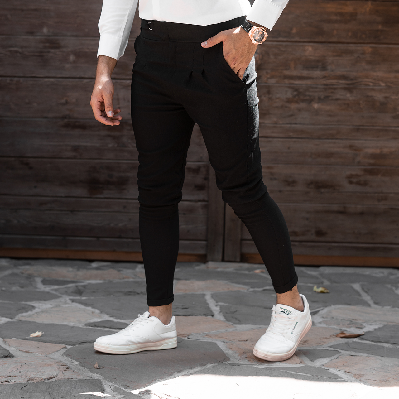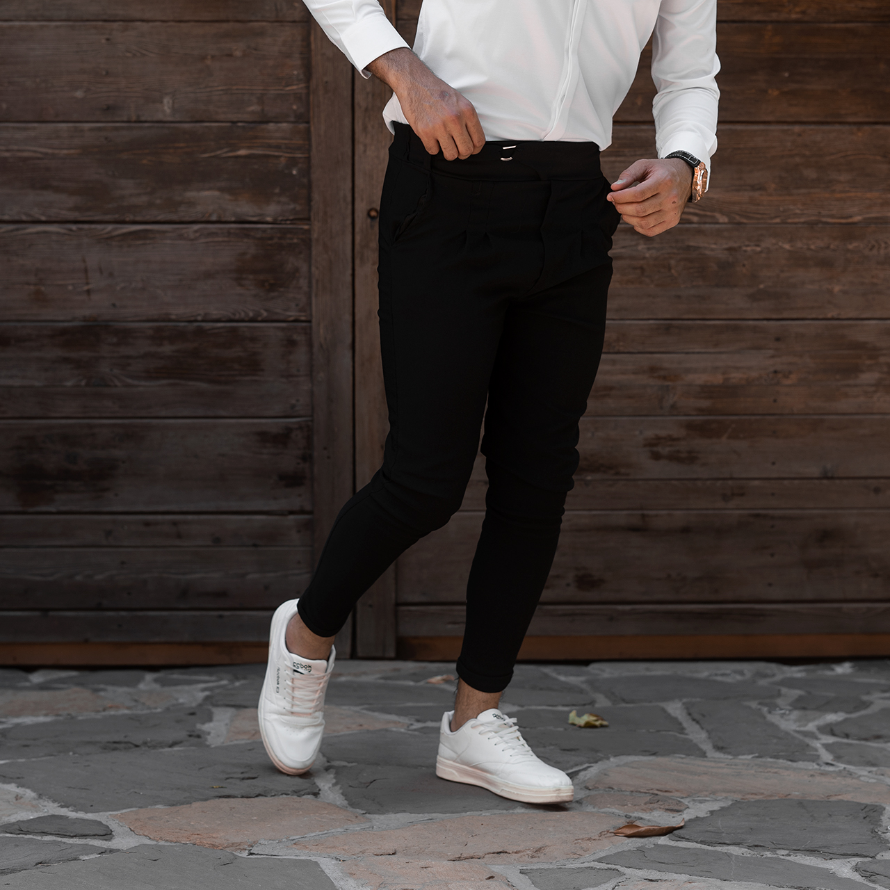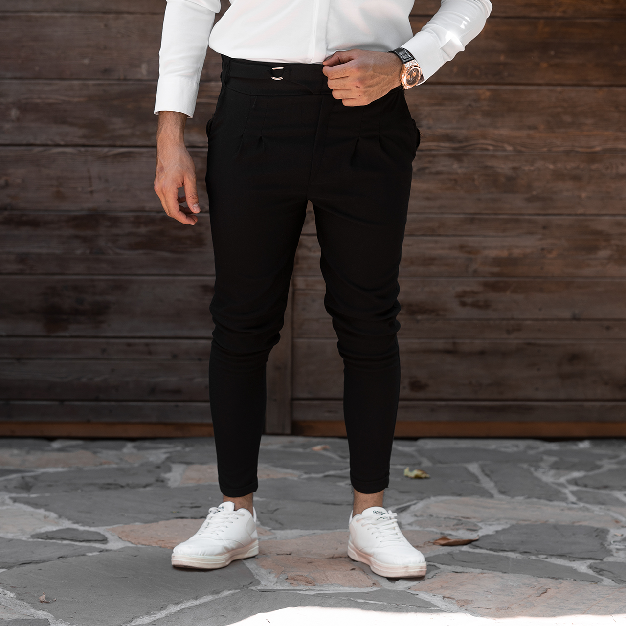 شلوار اسلش مشکی تک سگک مردانه مدل Afshar