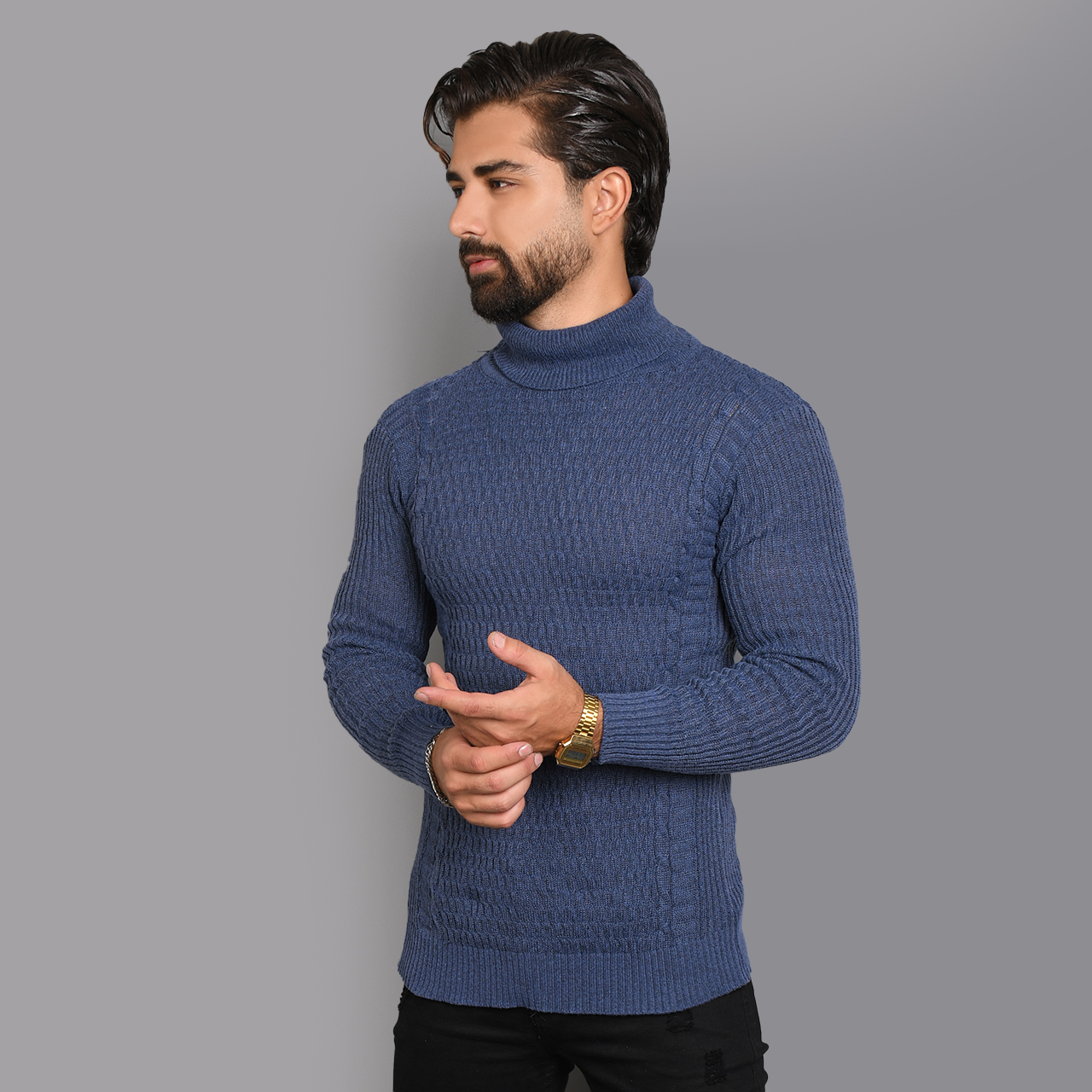 پلیور یقه اسکی آبی طرح راه راه مردانه مدلT10