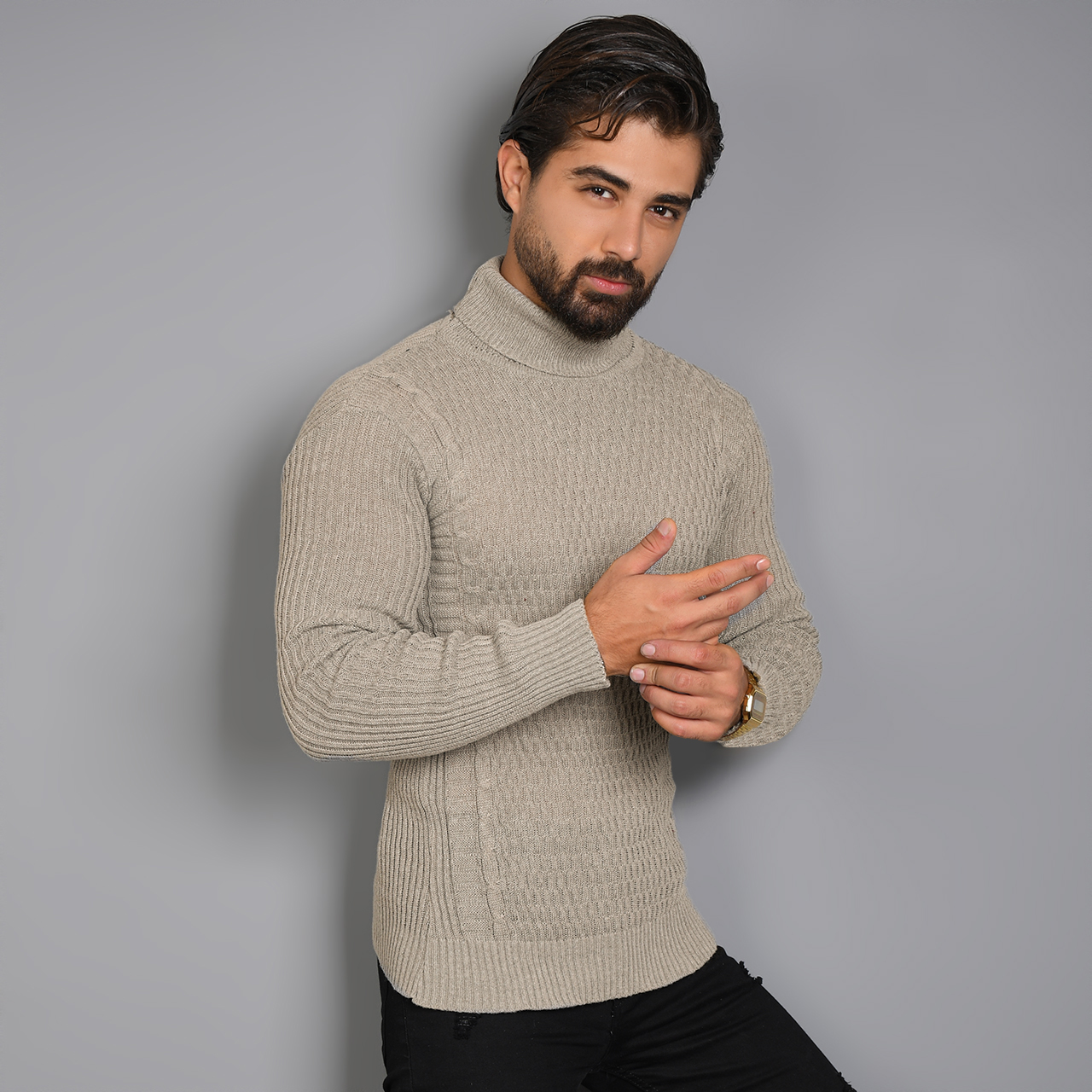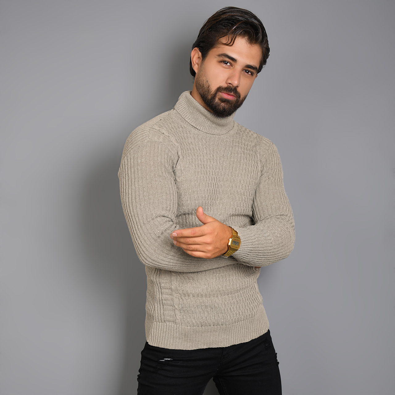پلیور یقه اسکی کرم طرح راه راه مردانه مدلT10