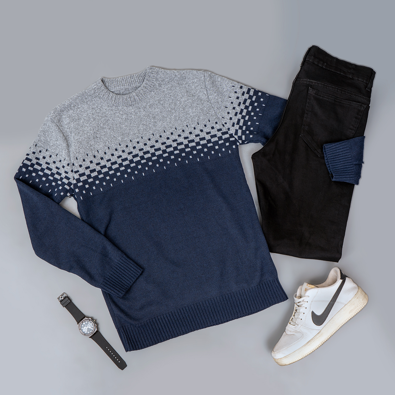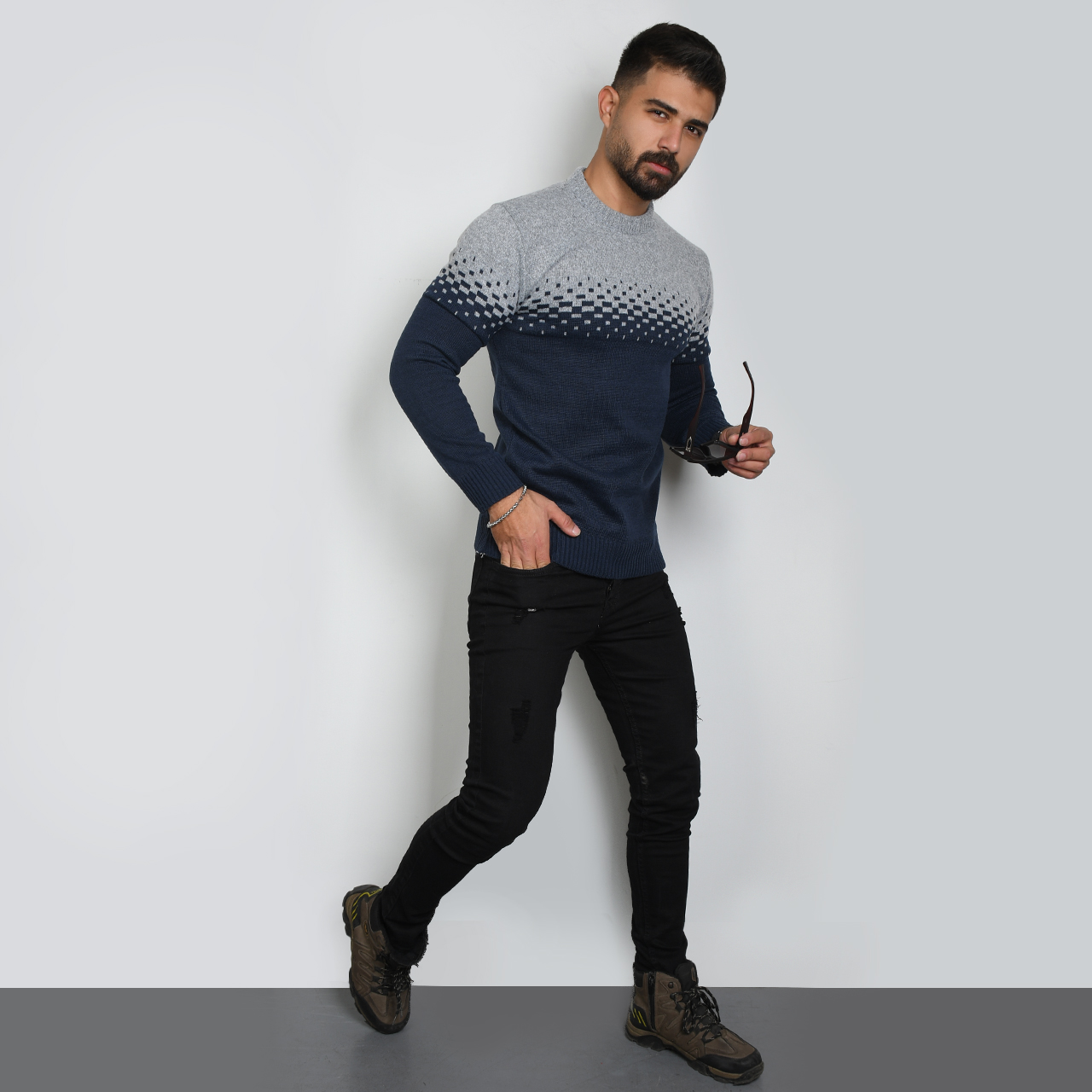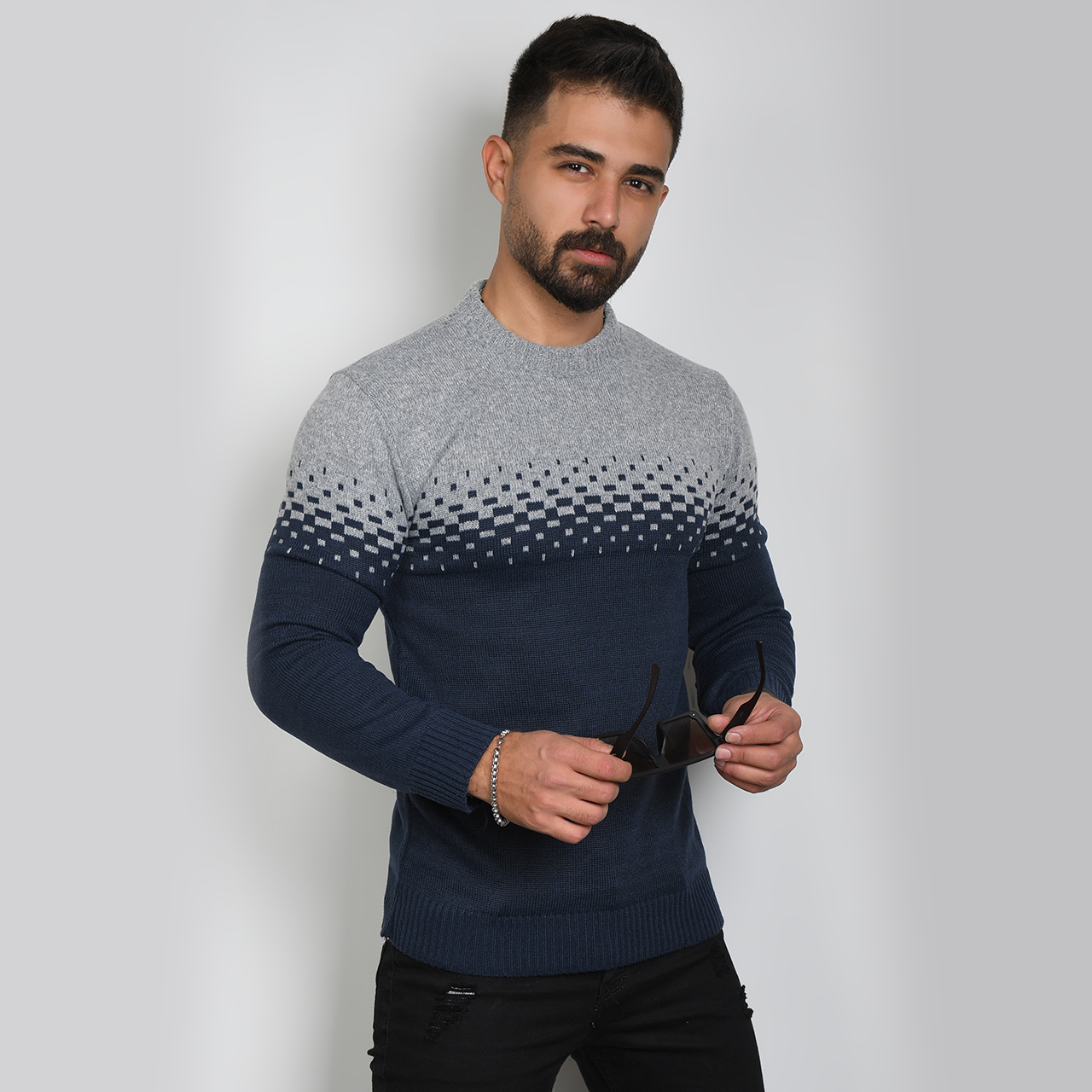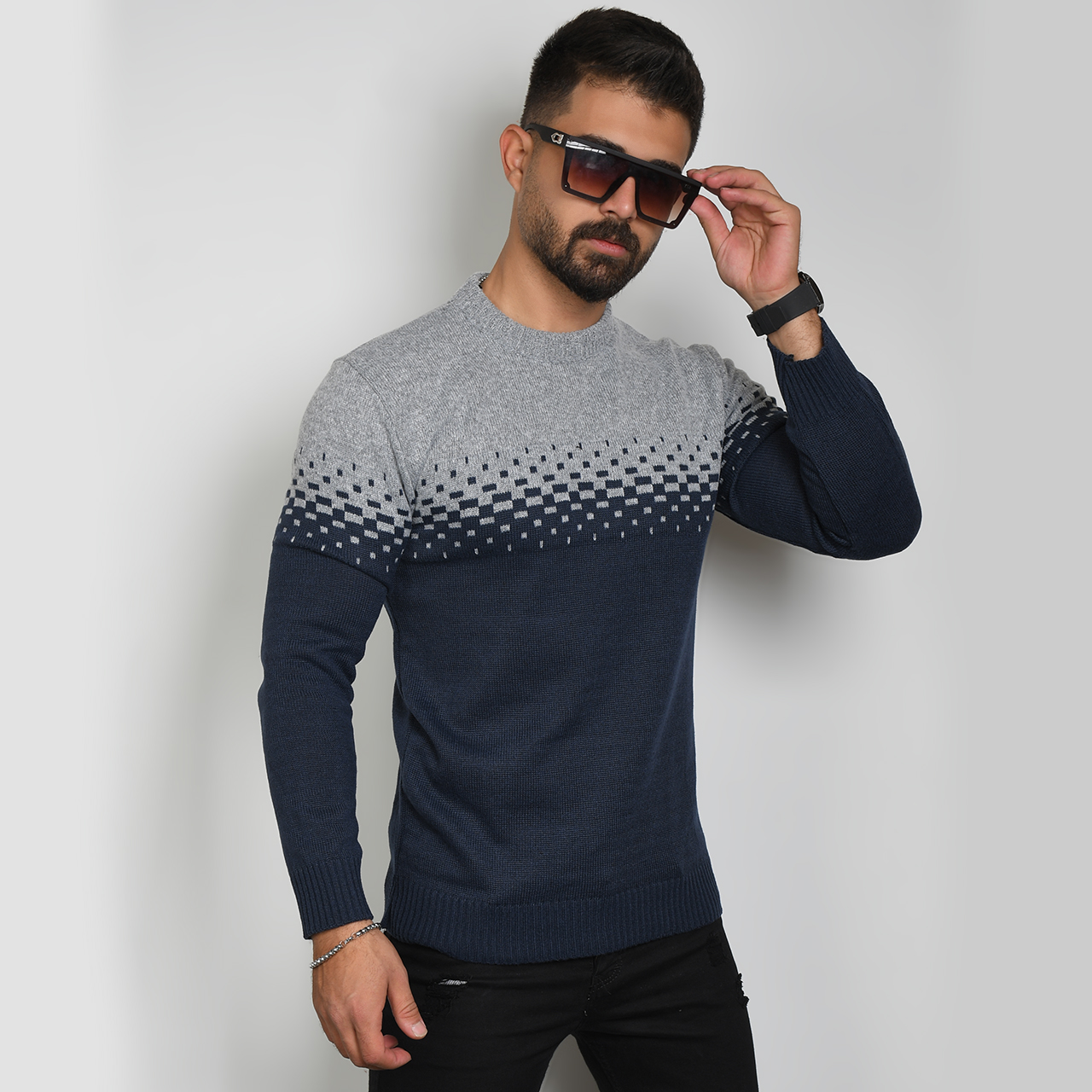 پلیور مردانه دو رنگ سرمه ای طوسی مدلShatel
