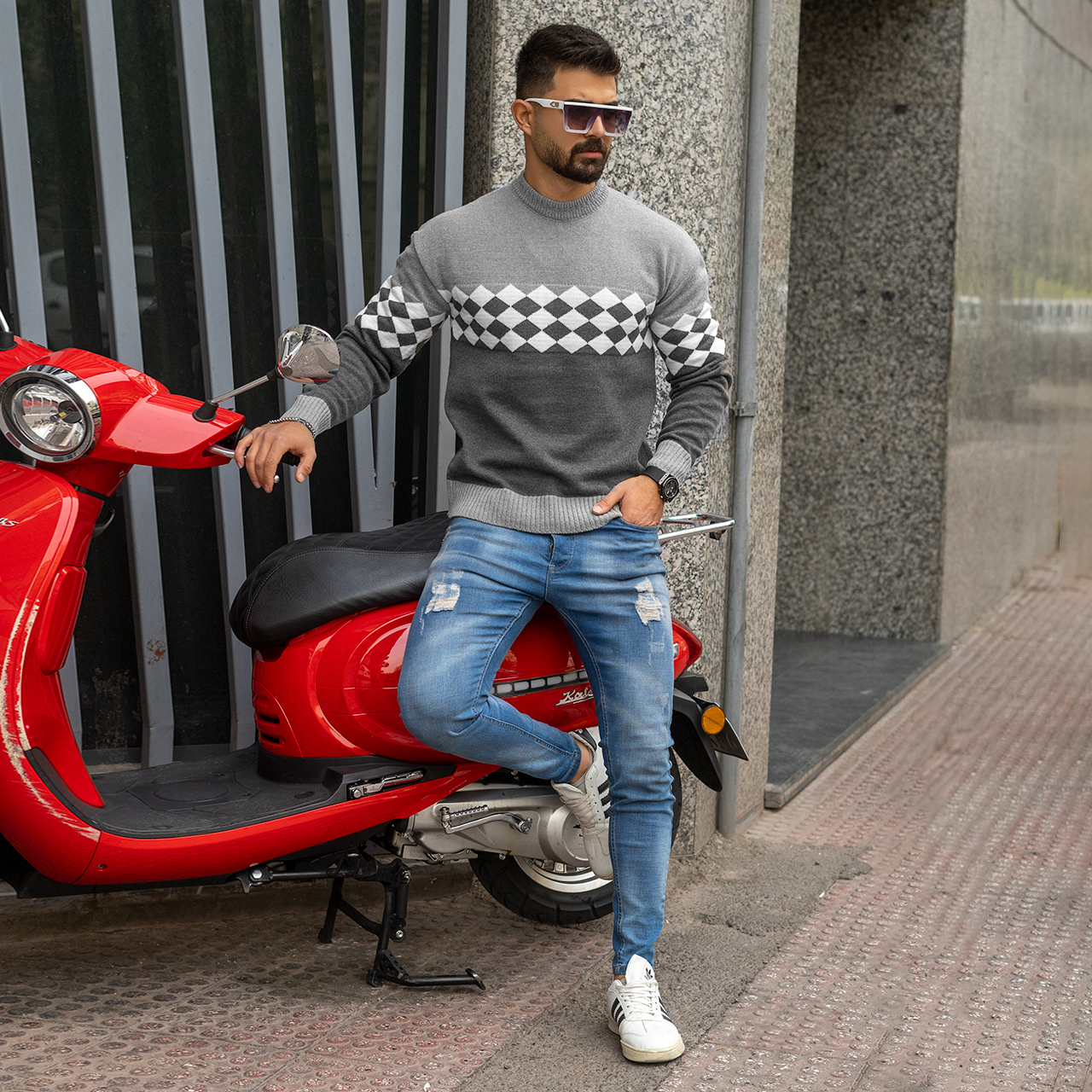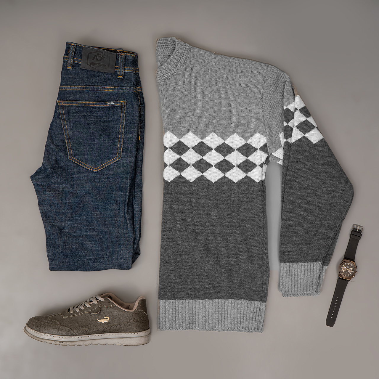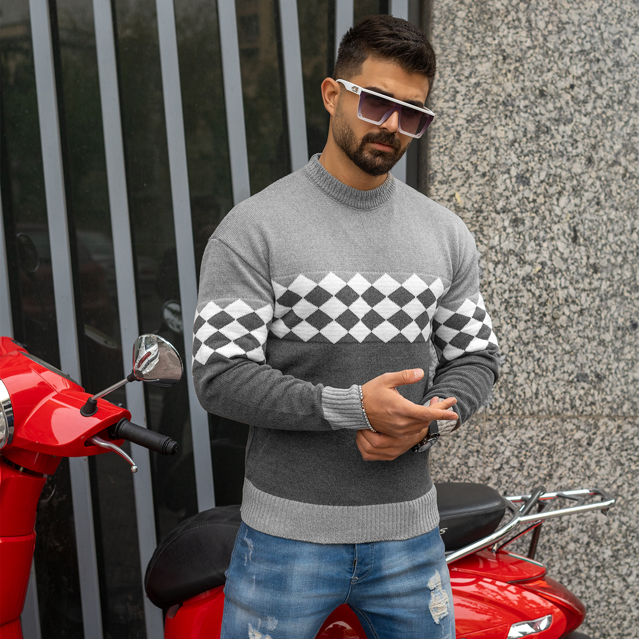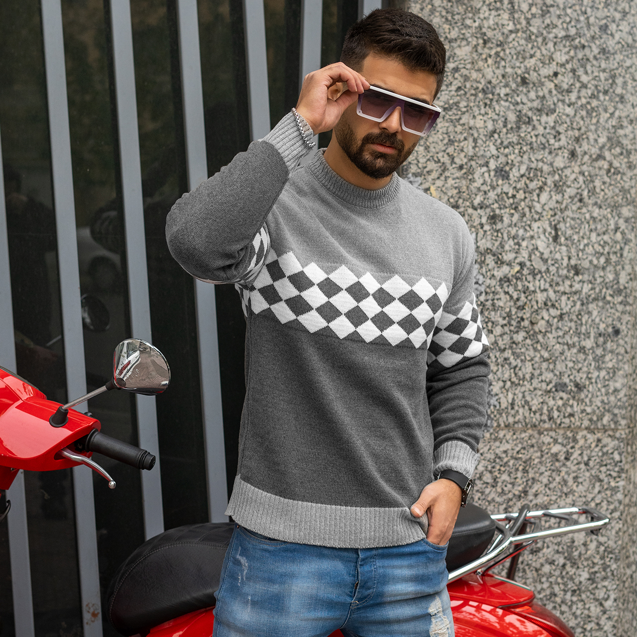 پلیور شطرنجی طوسی مردانه مدل U66