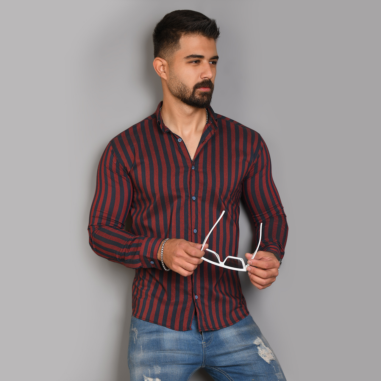 پیراهن راه راه مشکی قرمز مردانه مدل HAMED