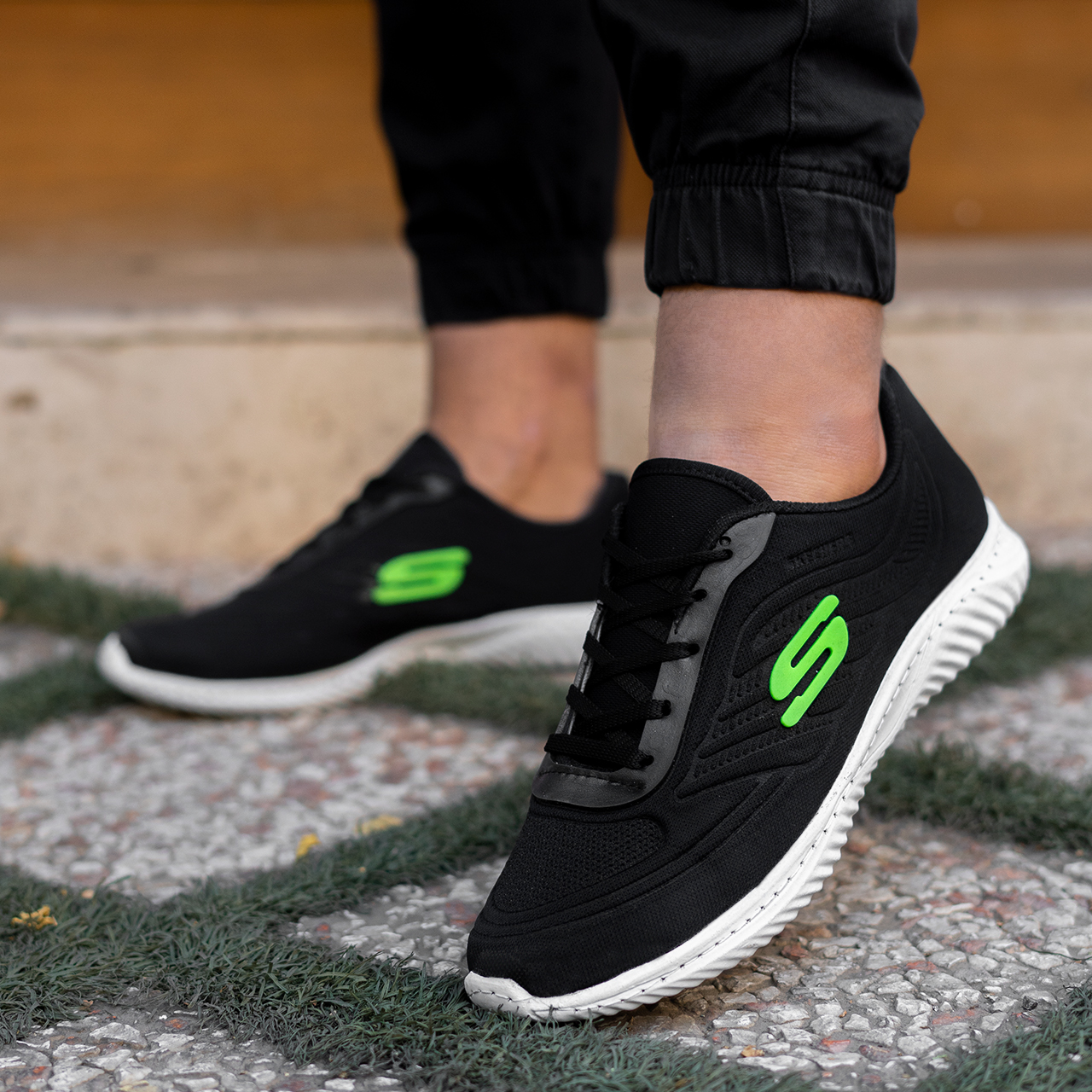 کفش ورزشی مردانه اسکچرزمشکی سبز مدل A14