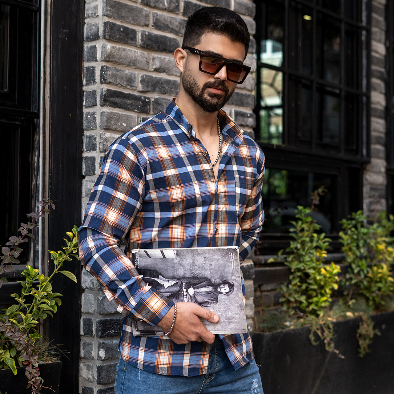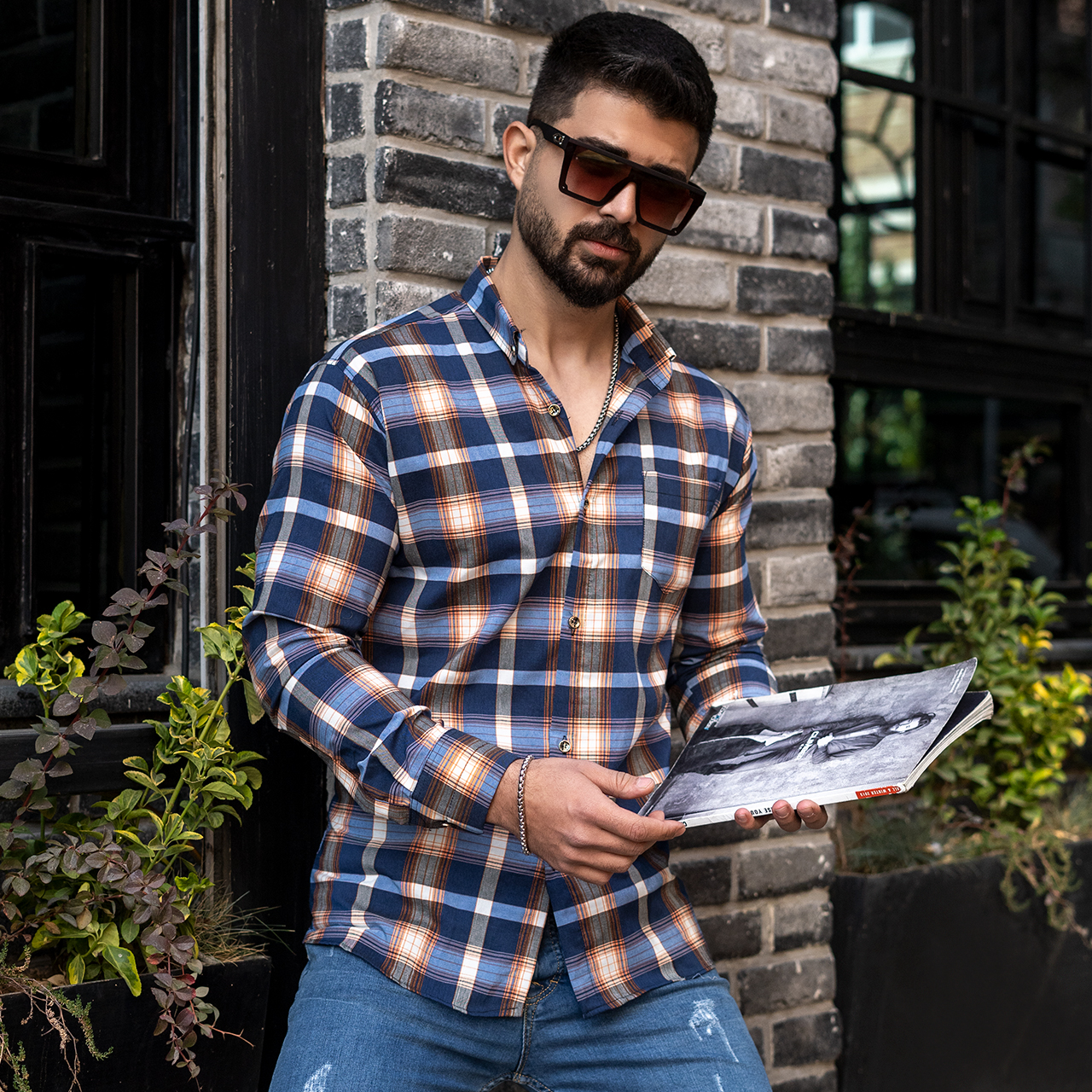 پیراهن مردانه سرمه ای نارنجی مدل Redi