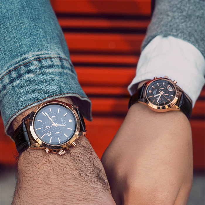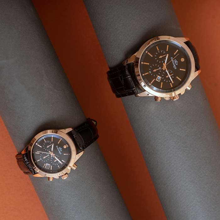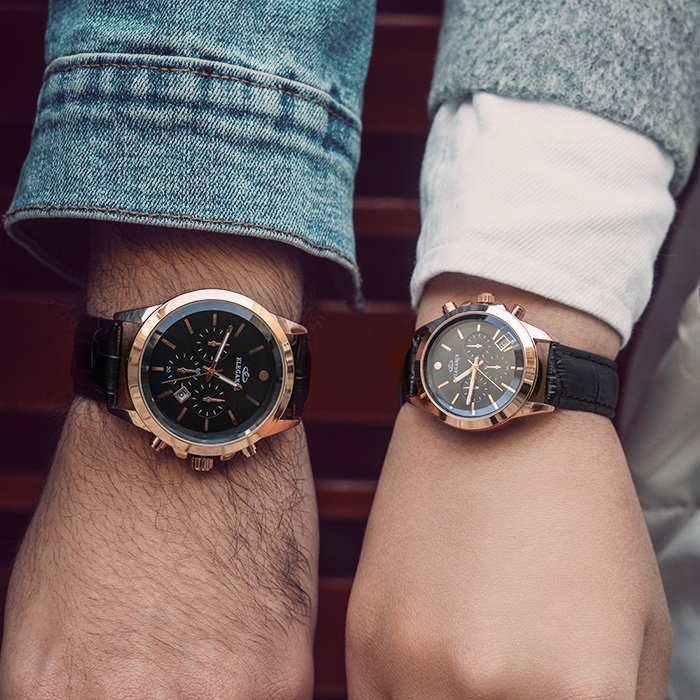 ست ساعت ELEGANCE رزگلد صفحه مشکی مدل Unix