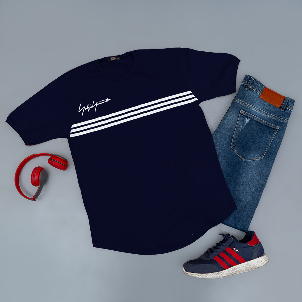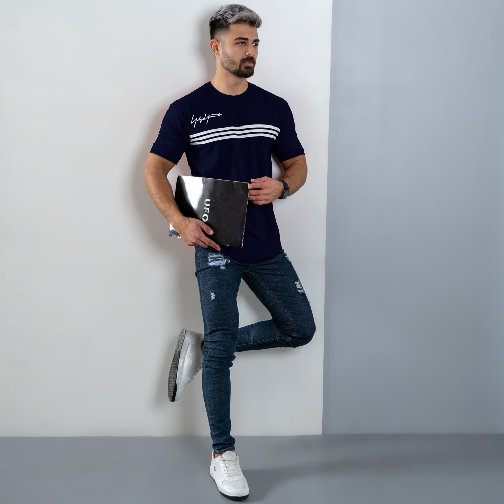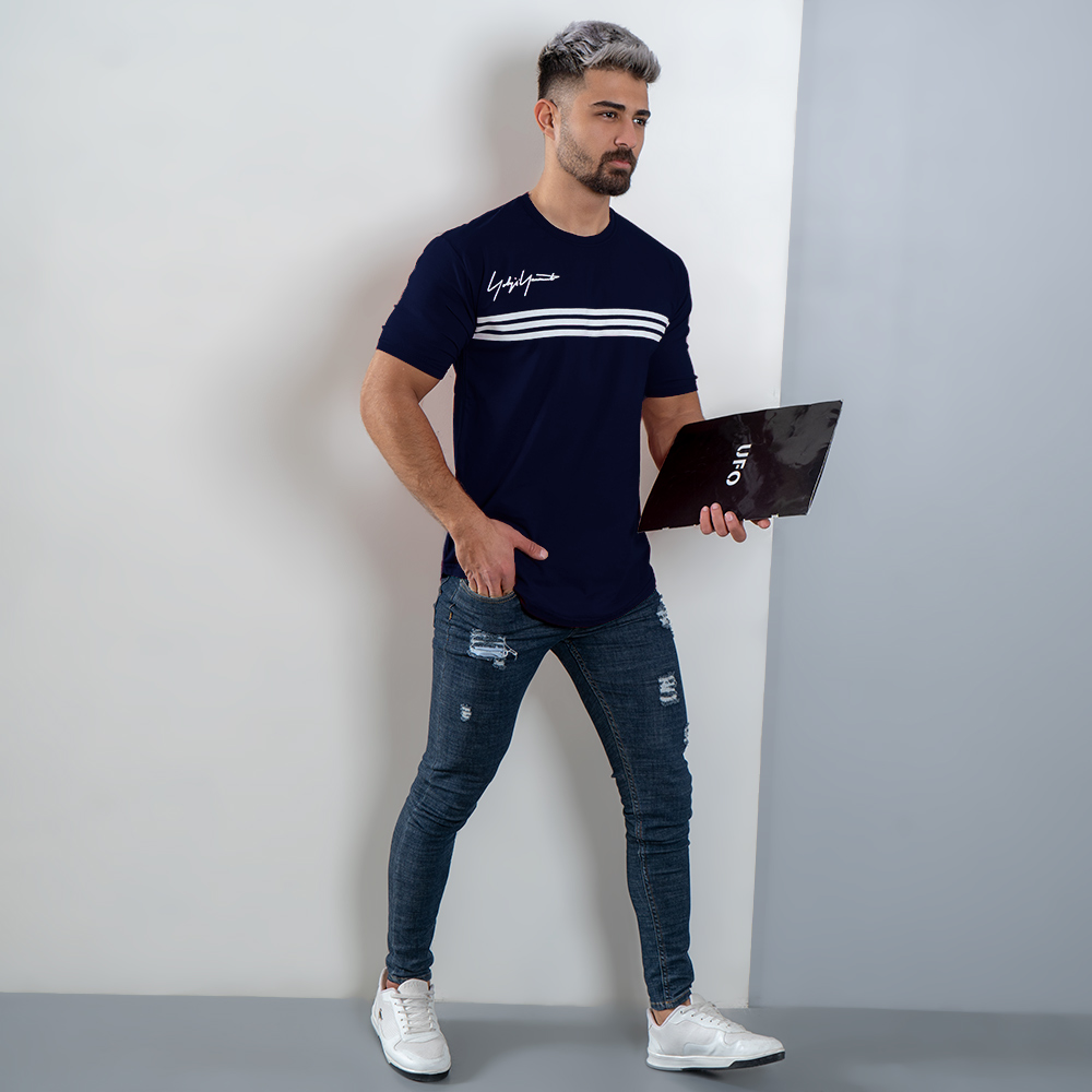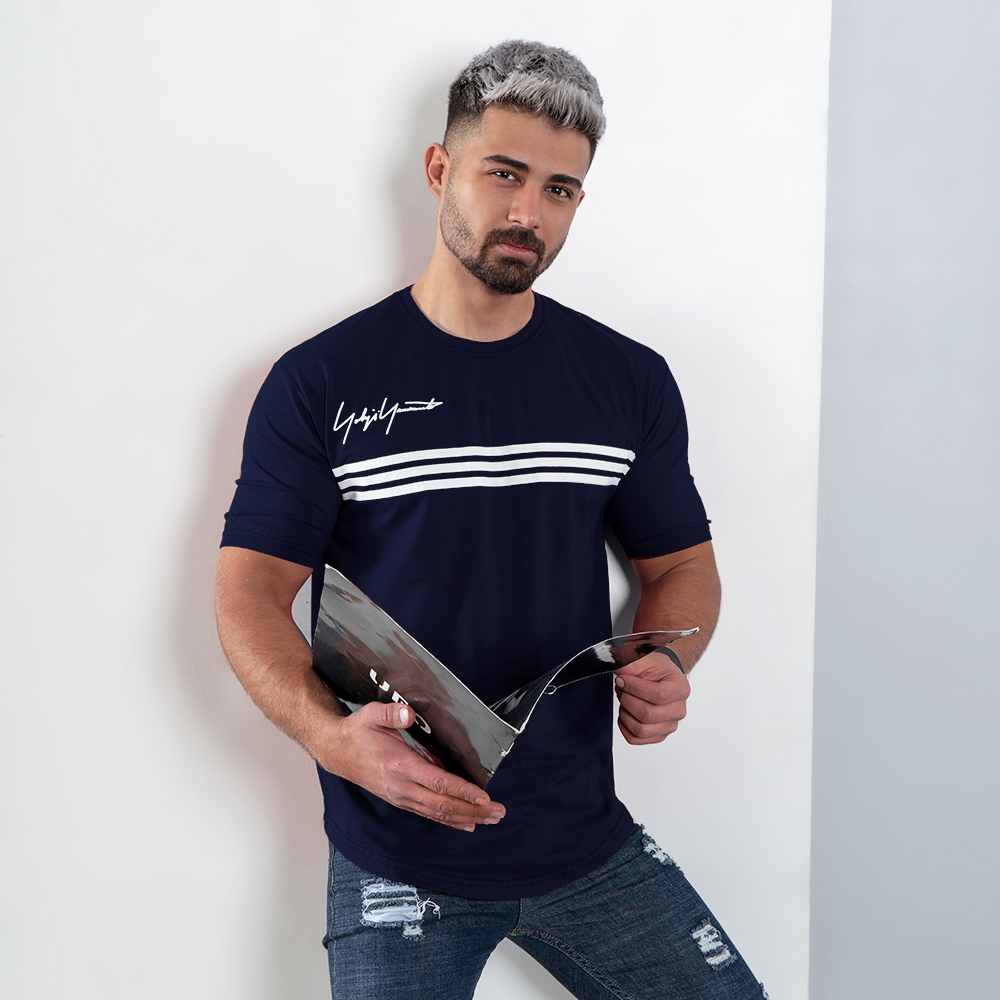 تیشرت مردانه سه خط سرمه ای مدل DENVER