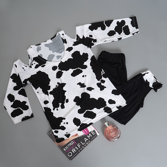 ست دخترانه تیشرت شلوارک طرح گاو مدل Sevin