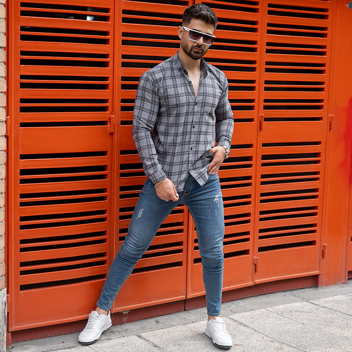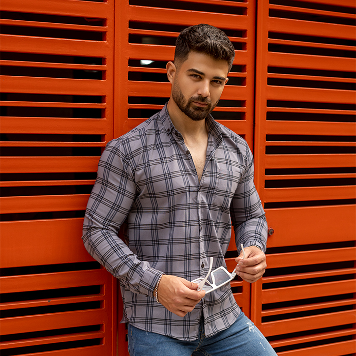 پیراهن مردانه طوسی تیره مدل Tanpoosh