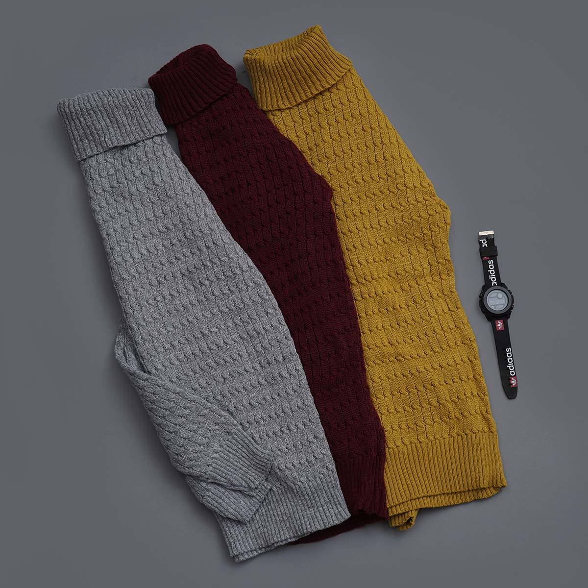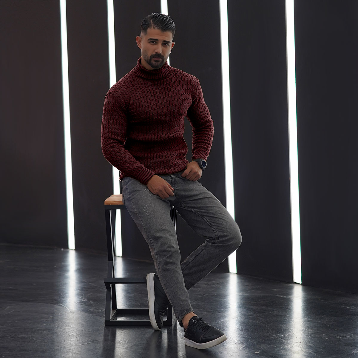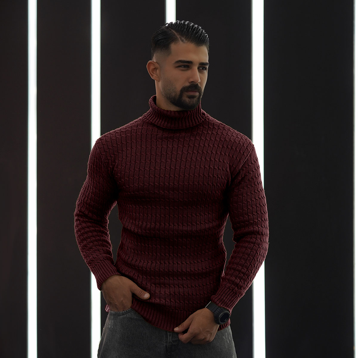 پلیوربافت مردانه زرشکی یقه اسکی مدل Pouyan
