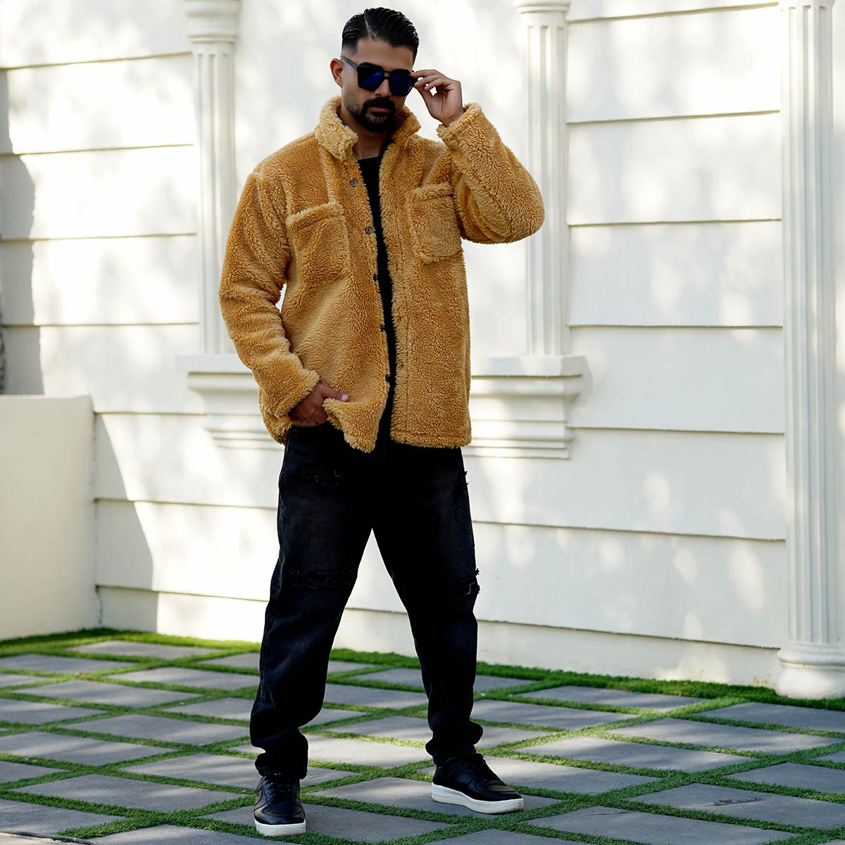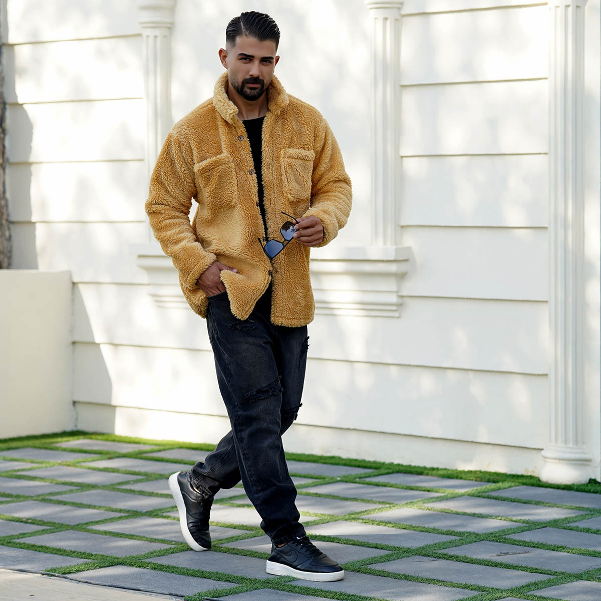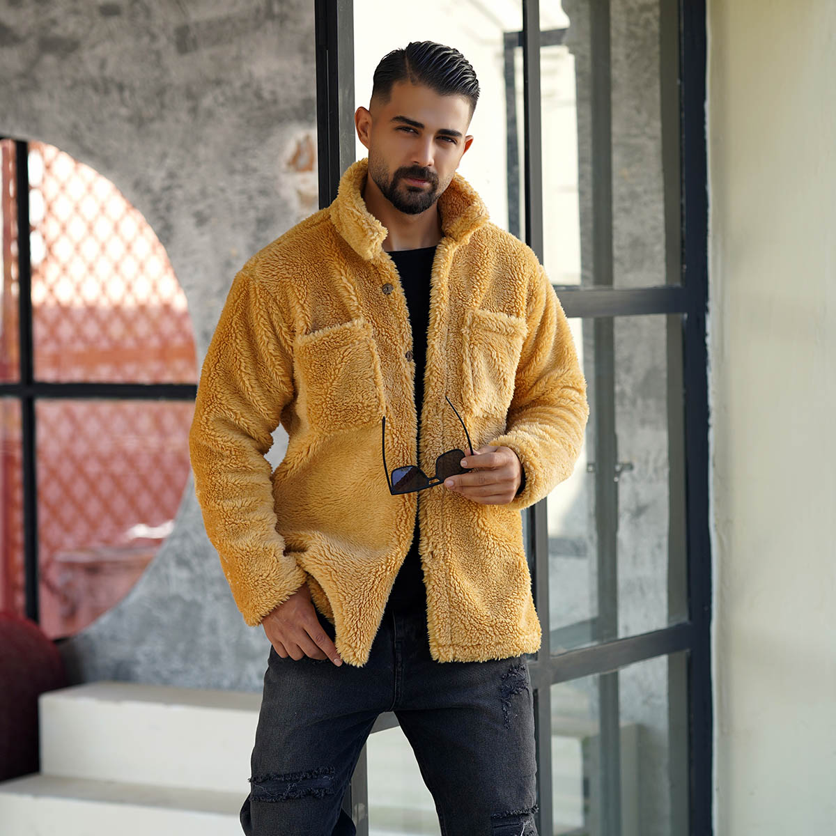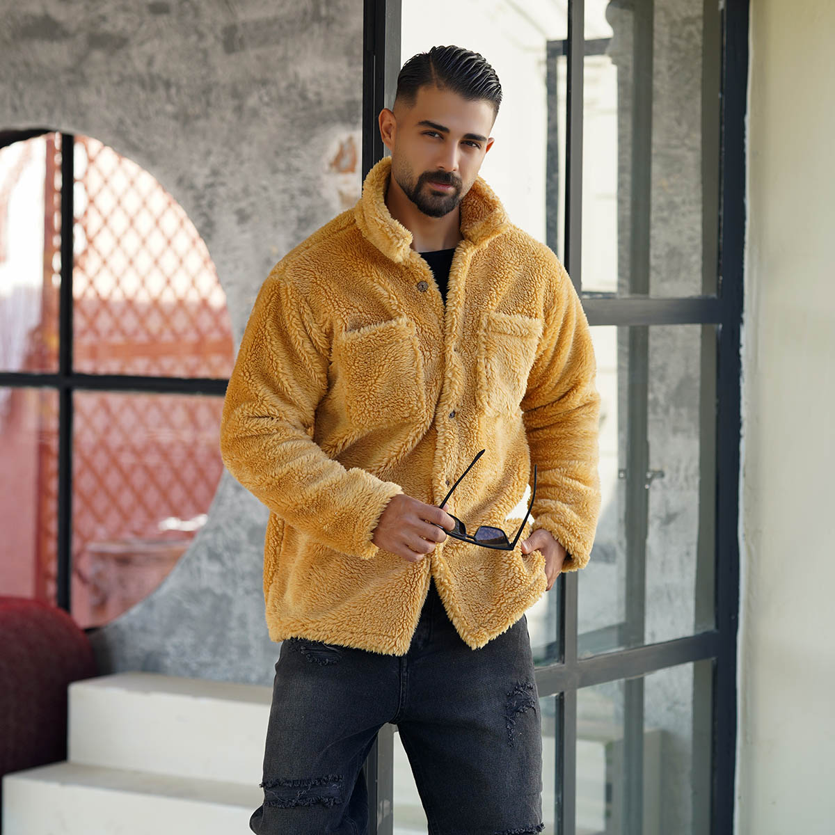 ژاکت مردانه جیب دار خردلی مدل TEDI