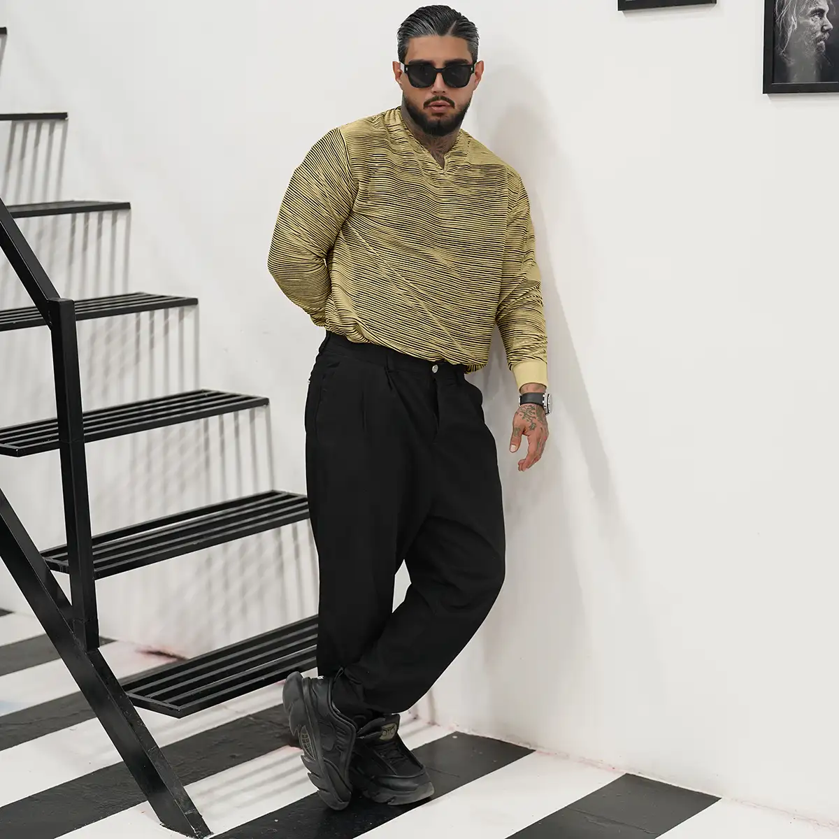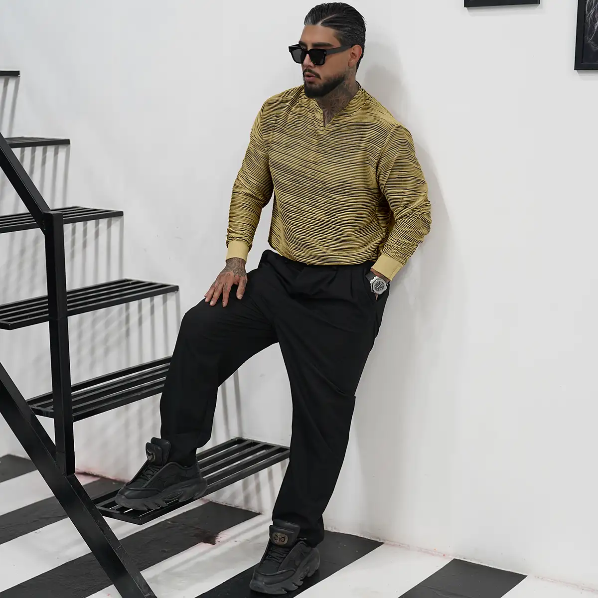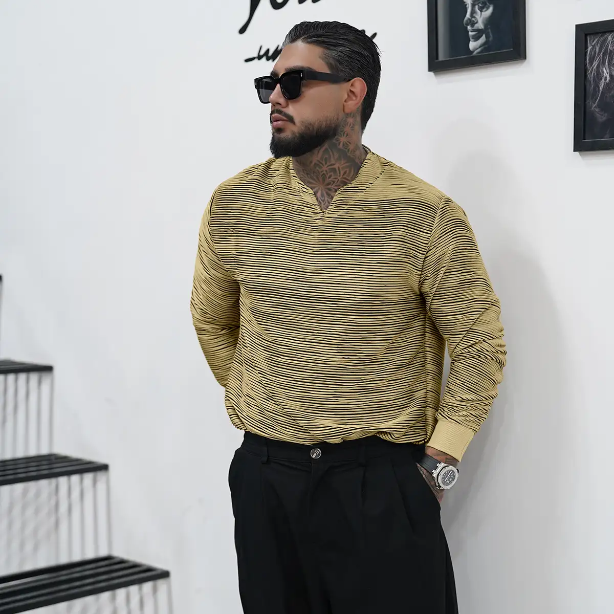 تیشرت آستین بلند یقه کوبایی سبز روشن مدل Nivad