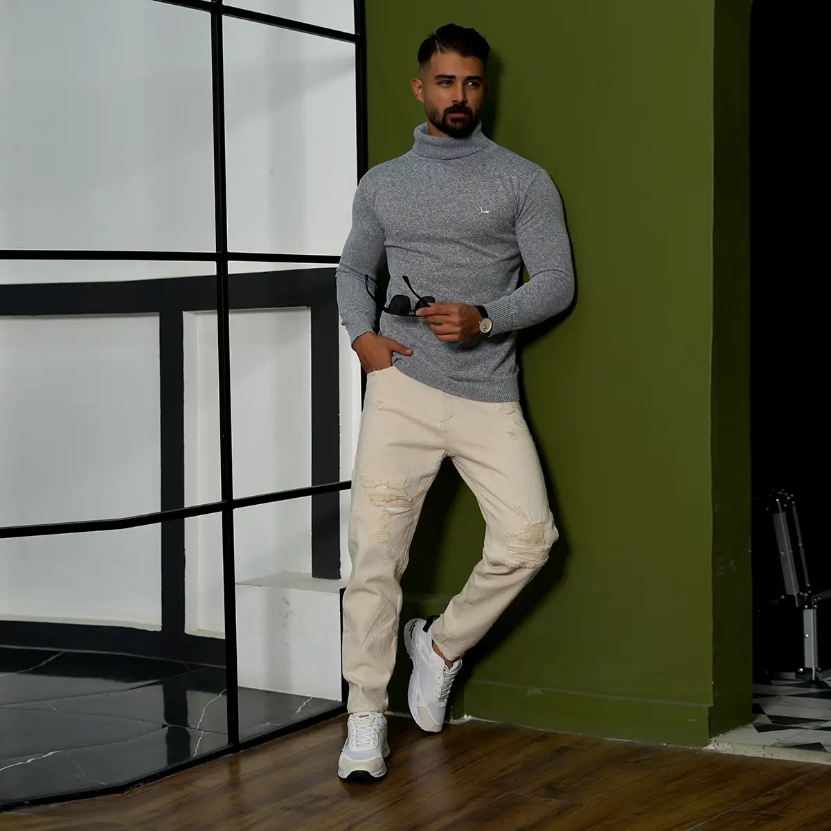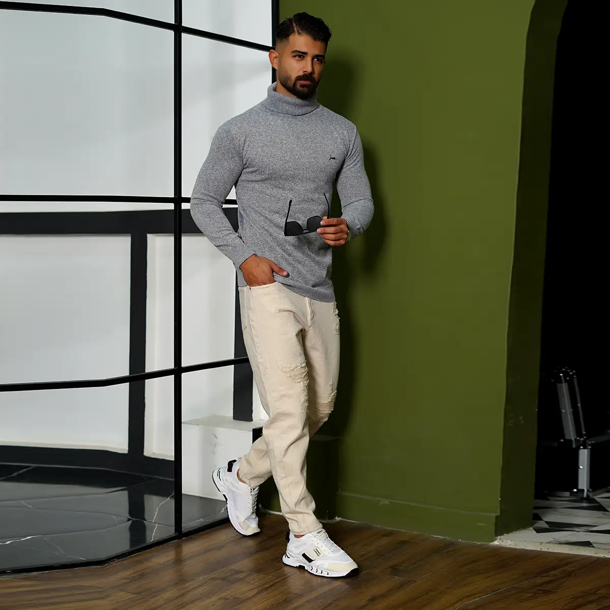 پلیور یقه اسکی پوما طوسی مدل Daryoosh