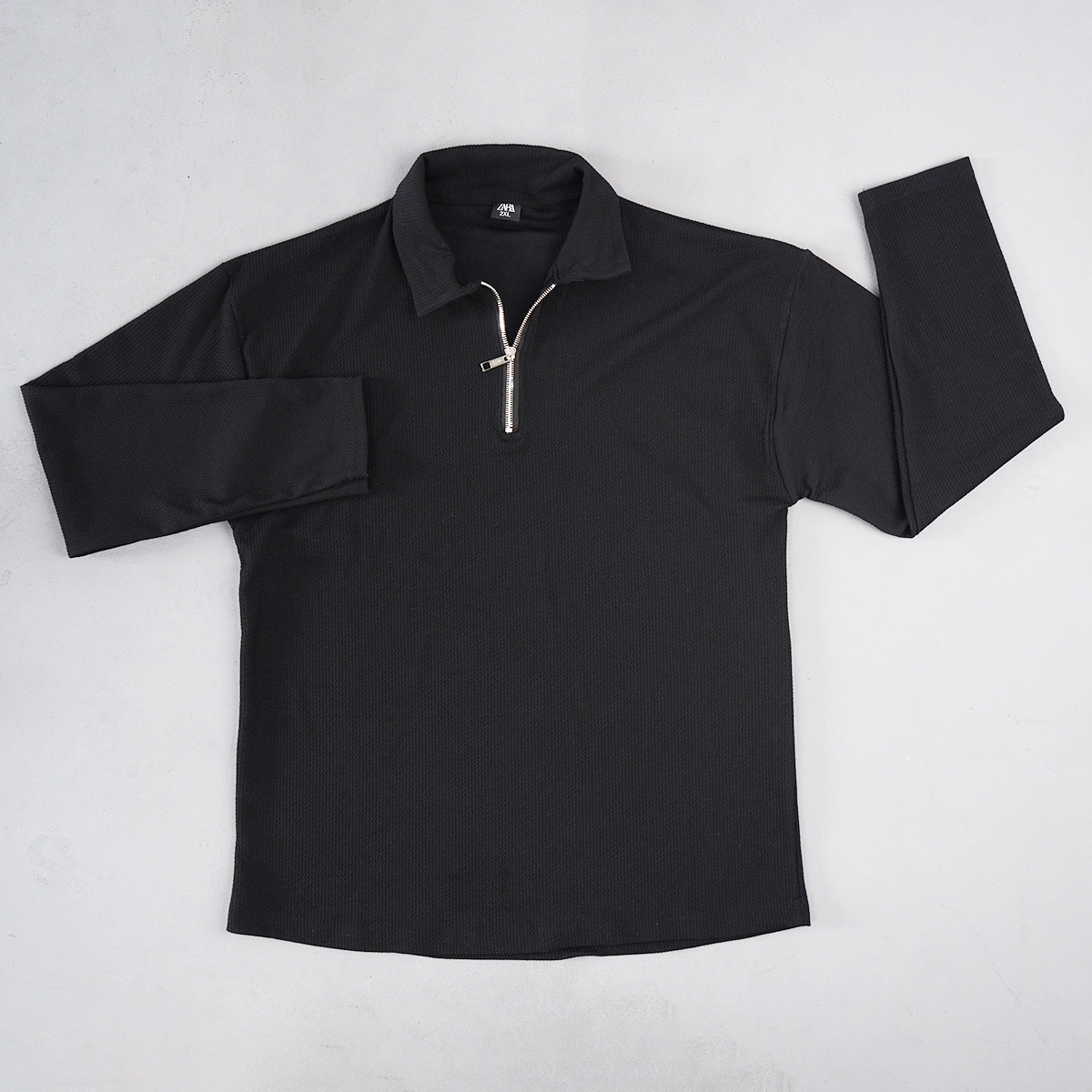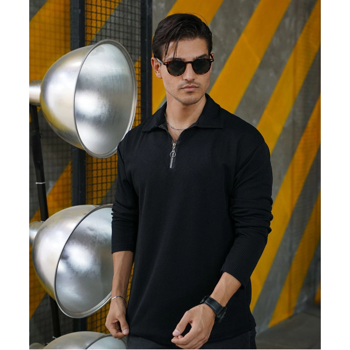 بلوز مردانه نیم زیپ آستین بلند مشکی مدل FARBOD
