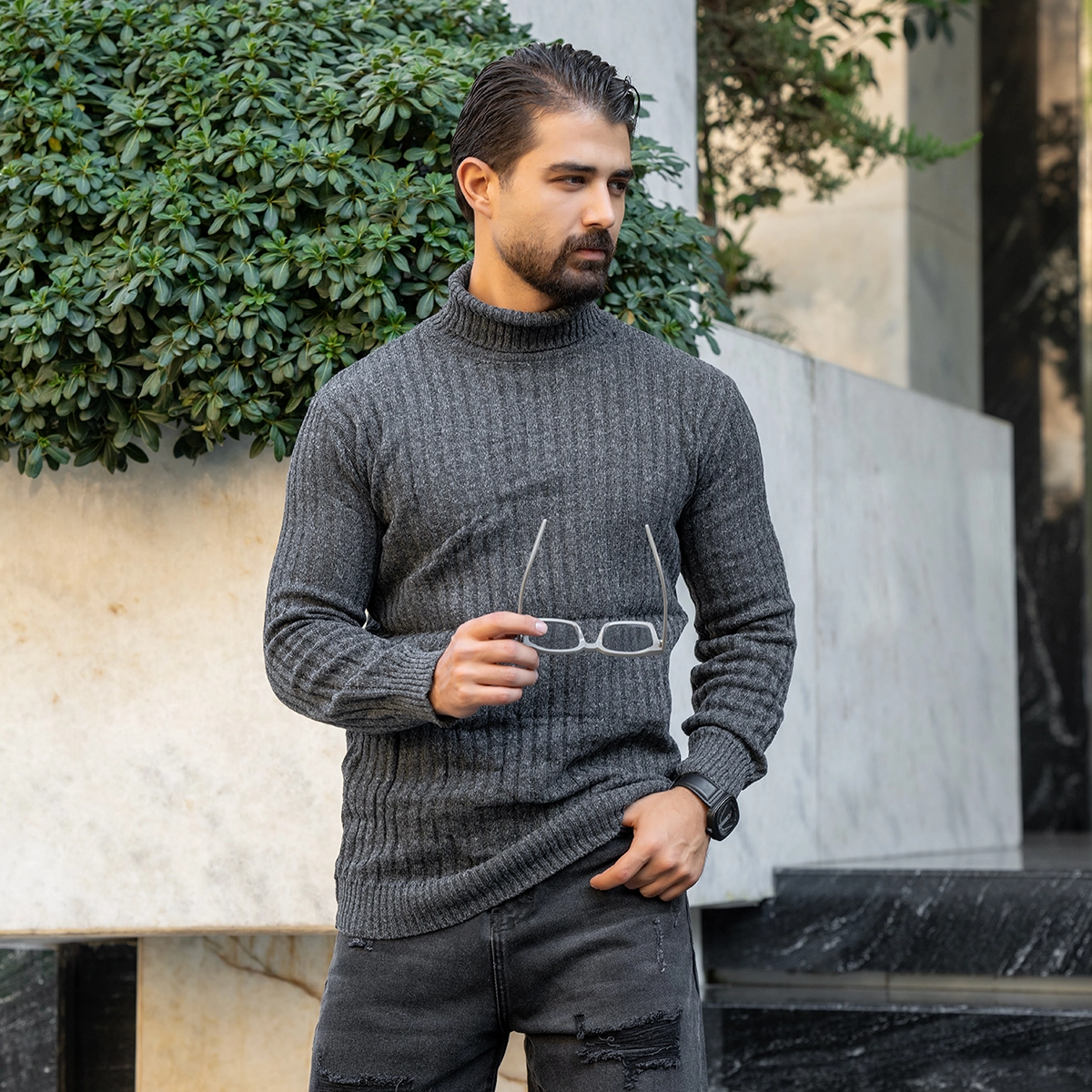 پلیور مردانه طوسی طرح خطی مدل Arban
