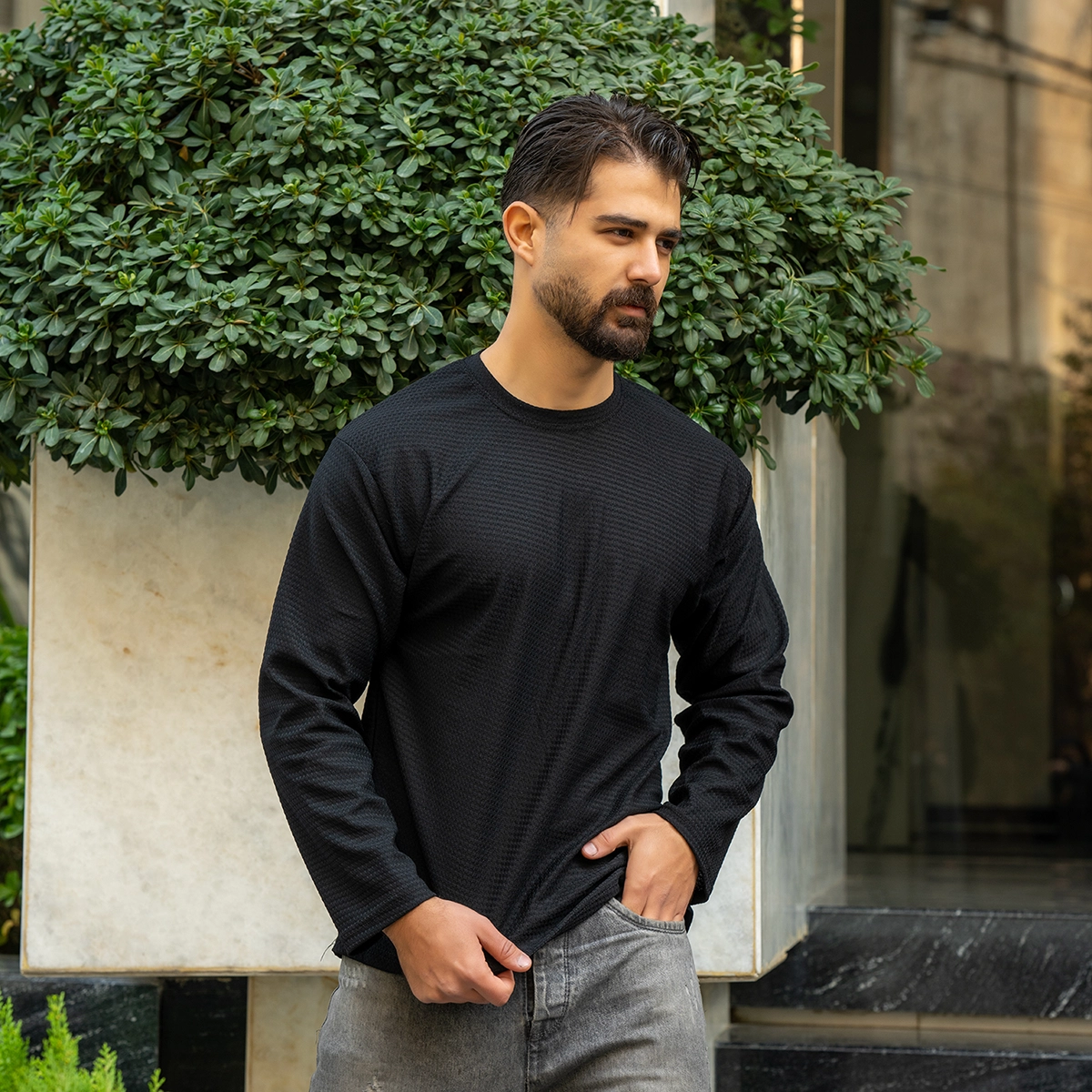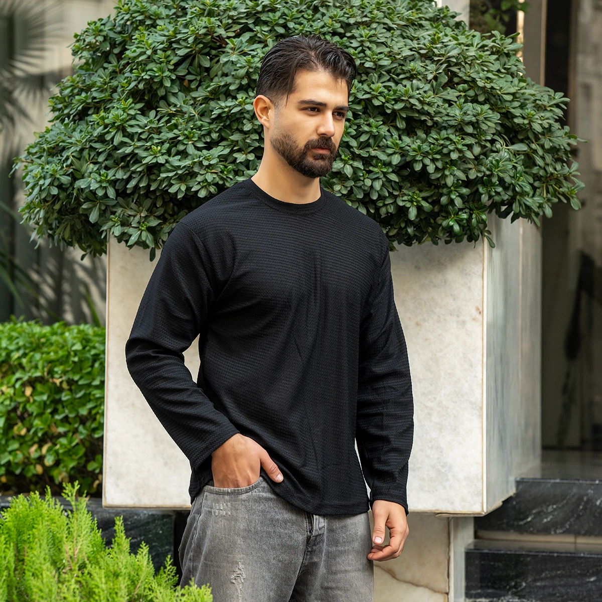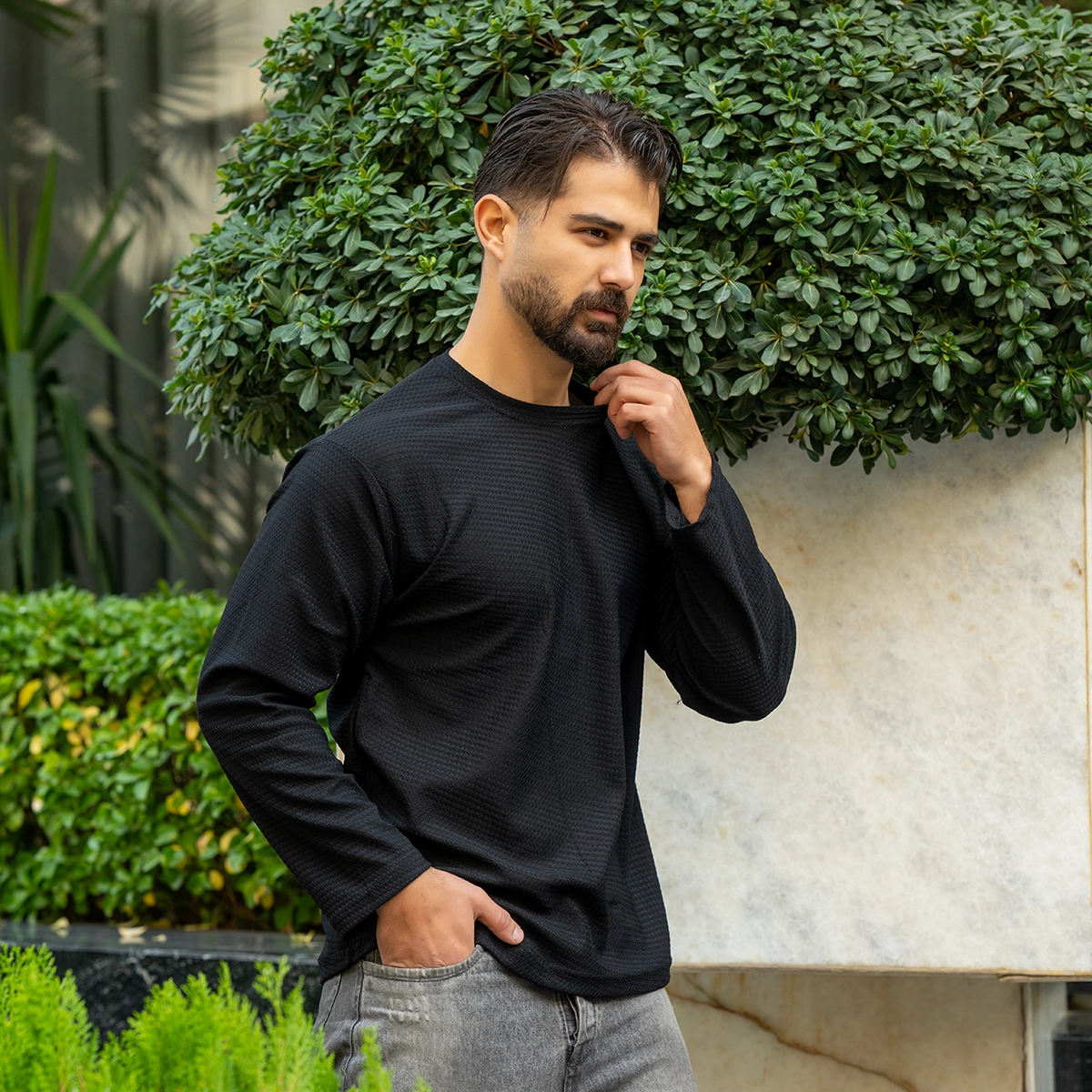 تیشرت آستین بلند مردانه مشکی مدل ARSALAN