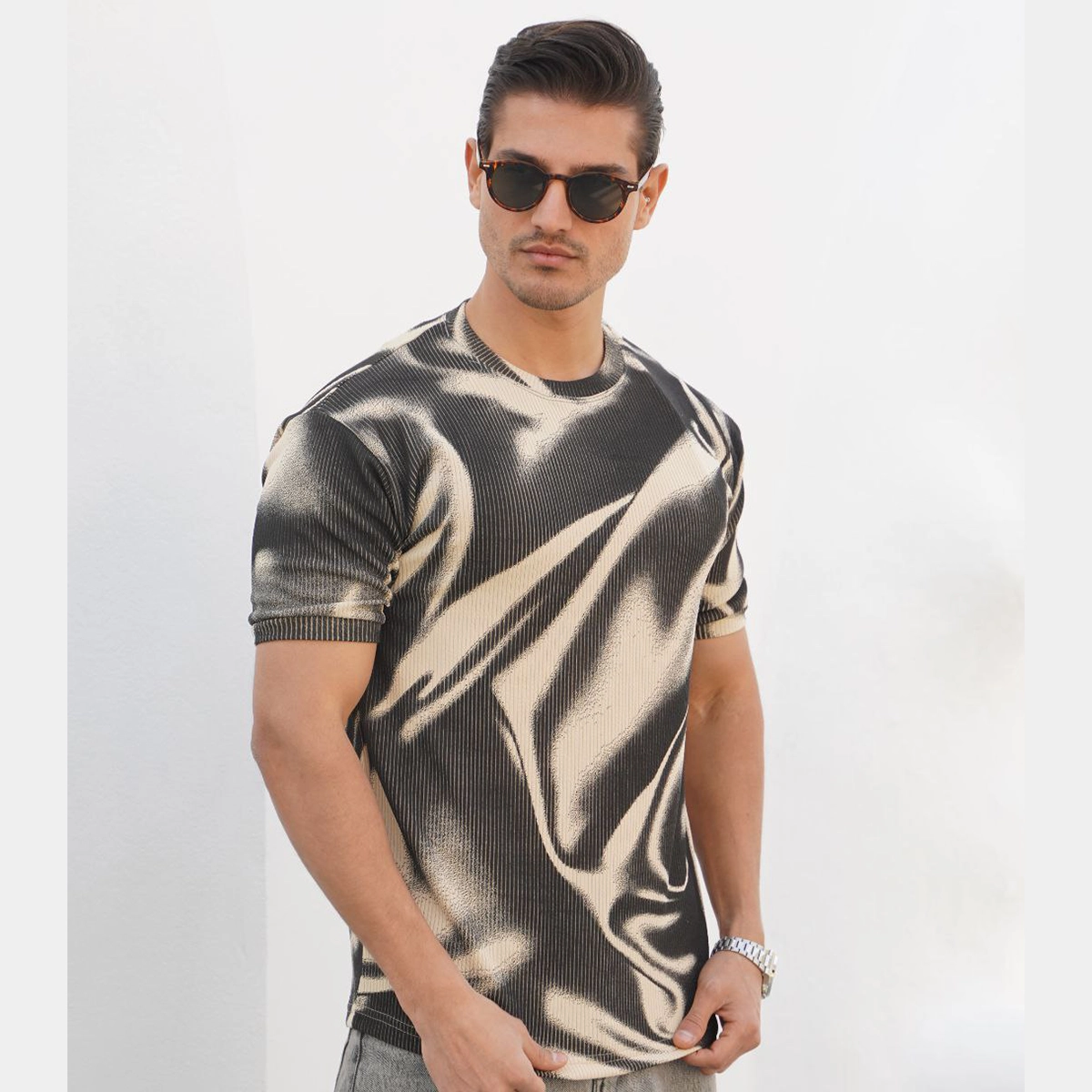 تیشرت مراکشی کبریتی کرم مشکی مدل Yaser