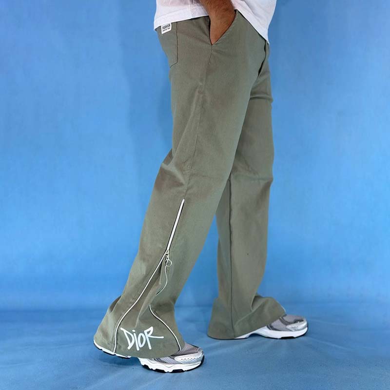 شلوار بگ سبز مردانه مدل پایین زیپ