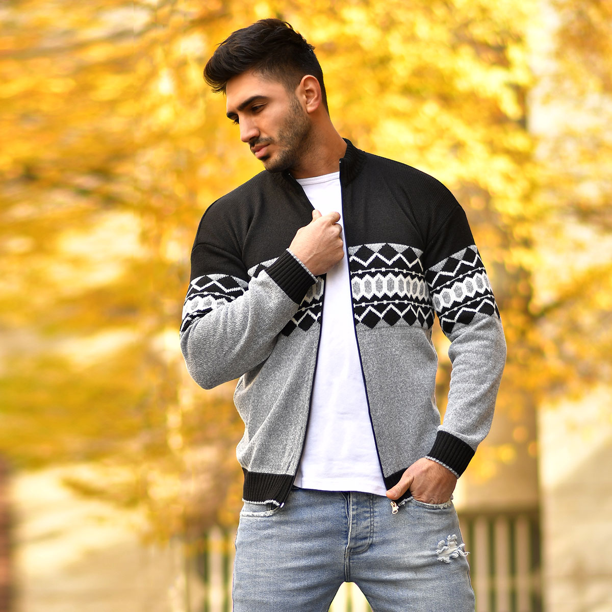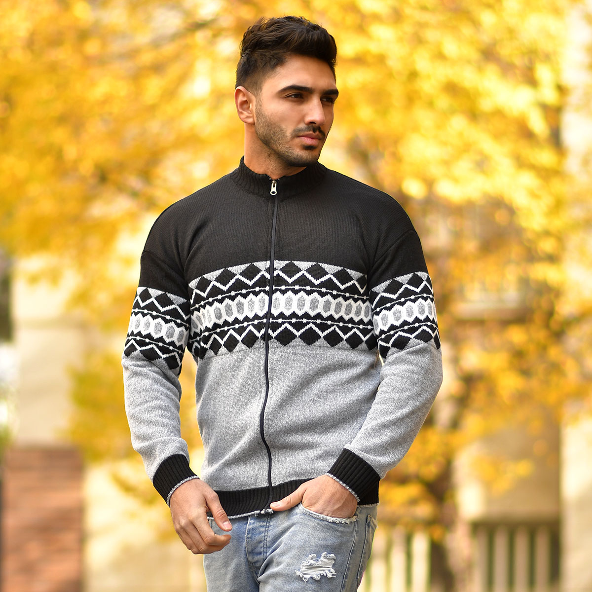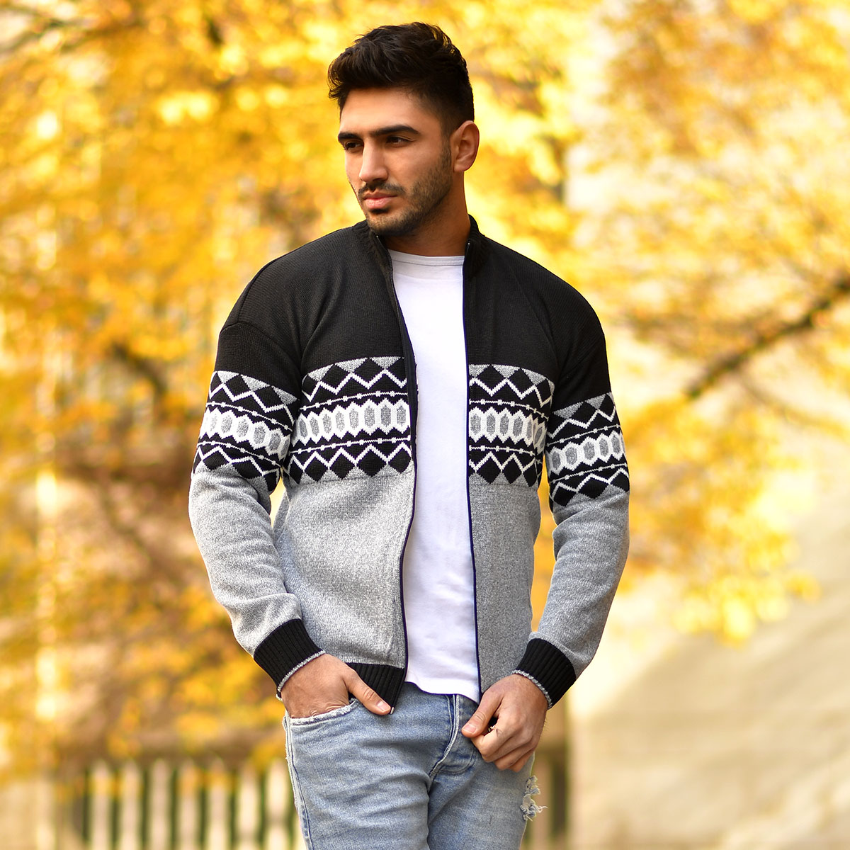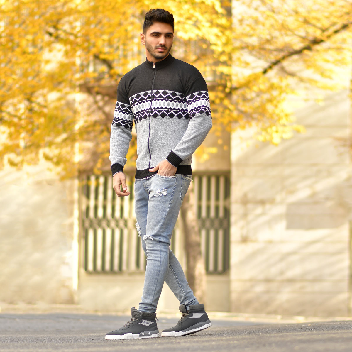 سوئيشرت بافت مشكي طوسي مردانه مدل Ezad