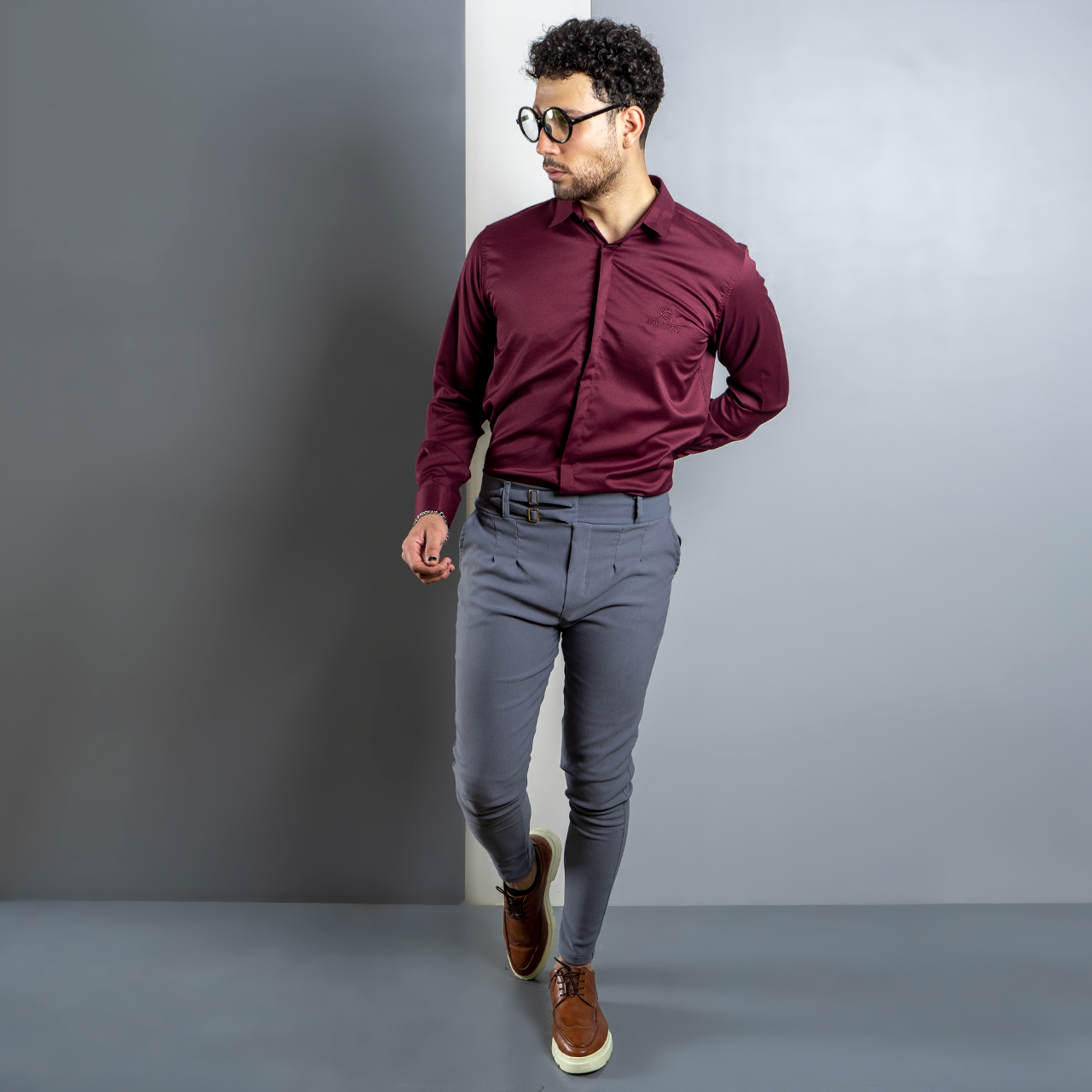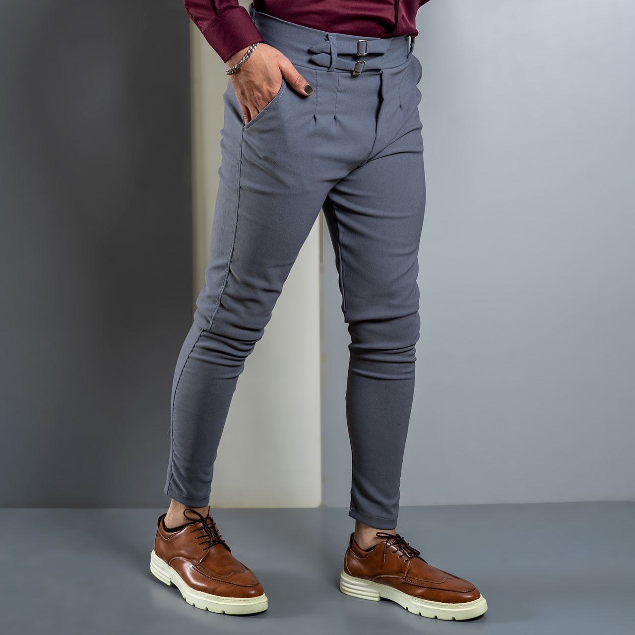 شلوار دو سگك طوسي تيره مردانه مدل Migel