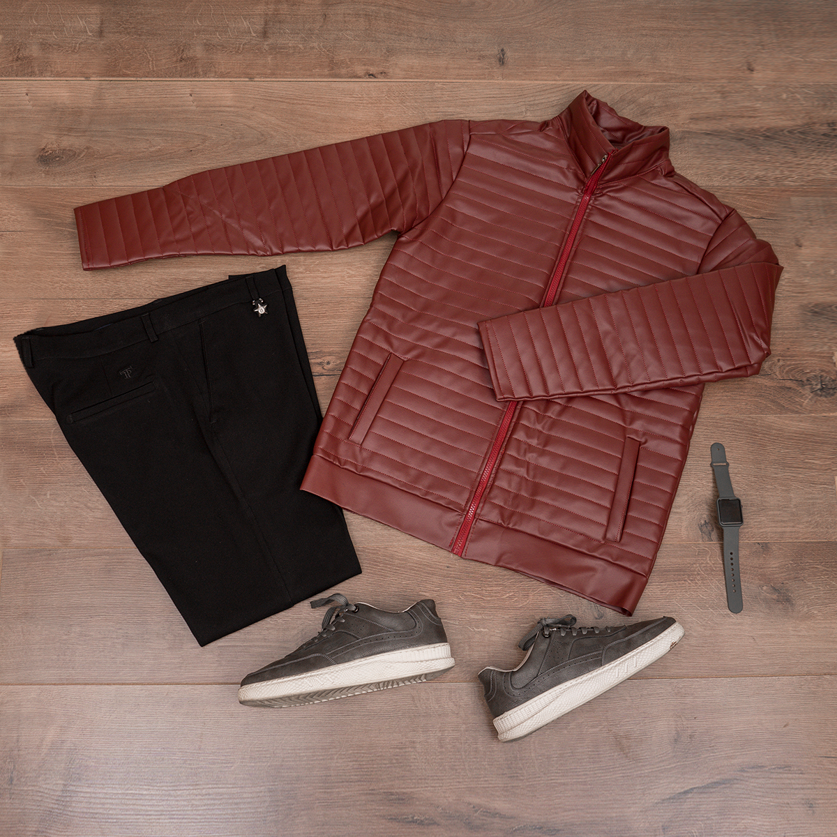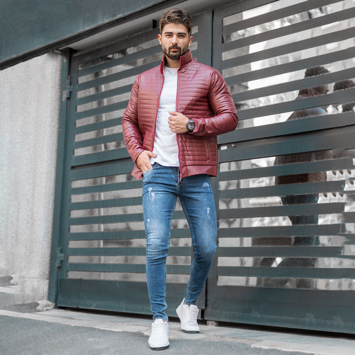 کاپشن چرم مردانه زرشکی مدل TIMER