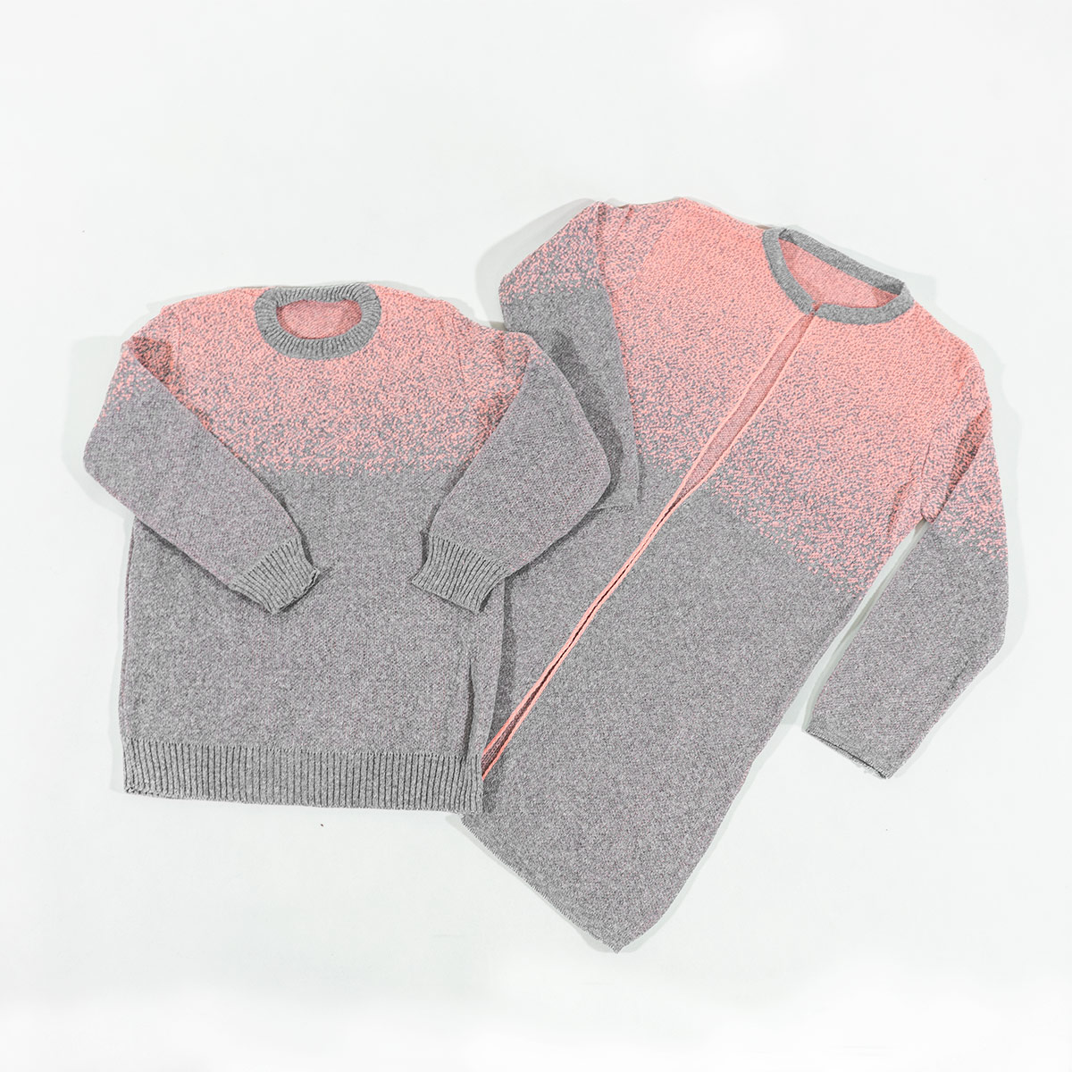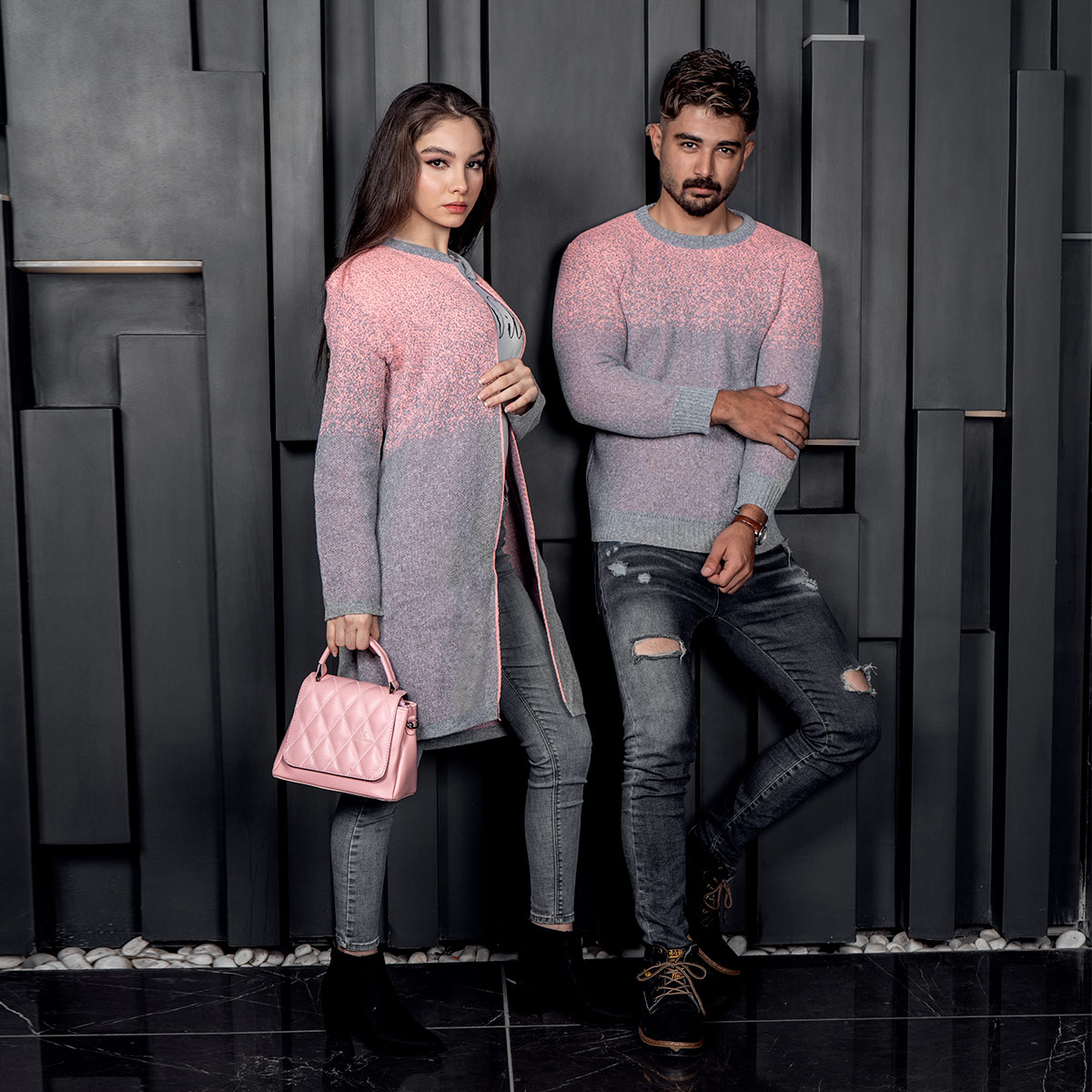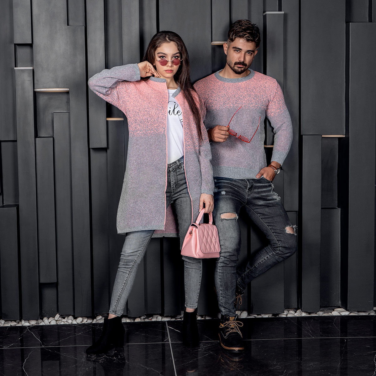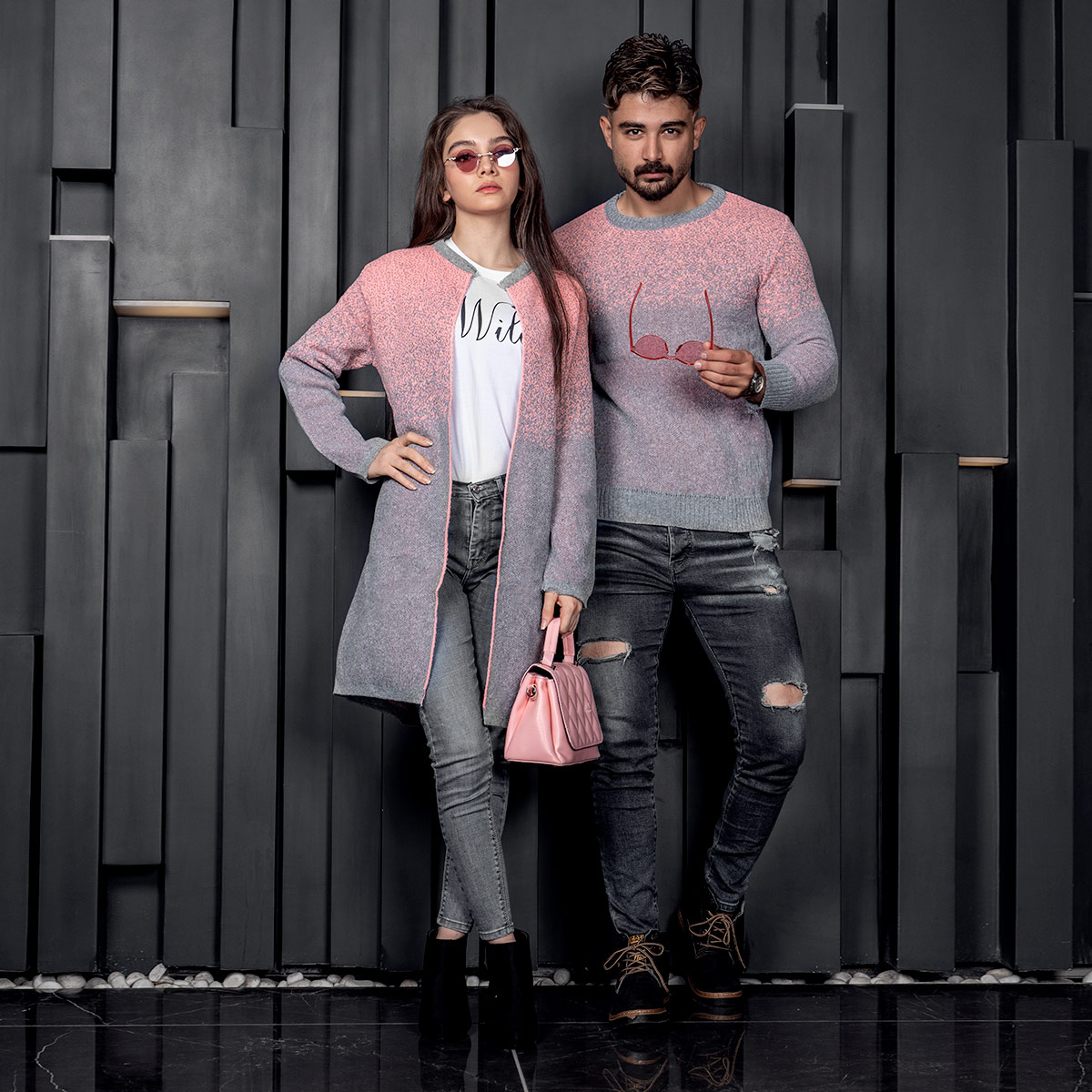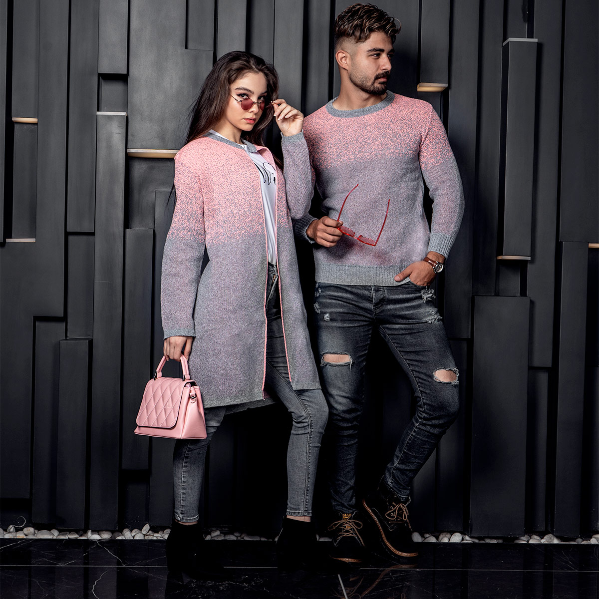 بسیاری از زوج های جوان شیک پوش و خوش سلیقه دوست دارند لباس های ست بپوشند. ست بافت طوسی صورتی مدل Shibaبا طرح و رنگ زیبا می تواند بهترین انتخاب برای زوج های عاشق باشد.