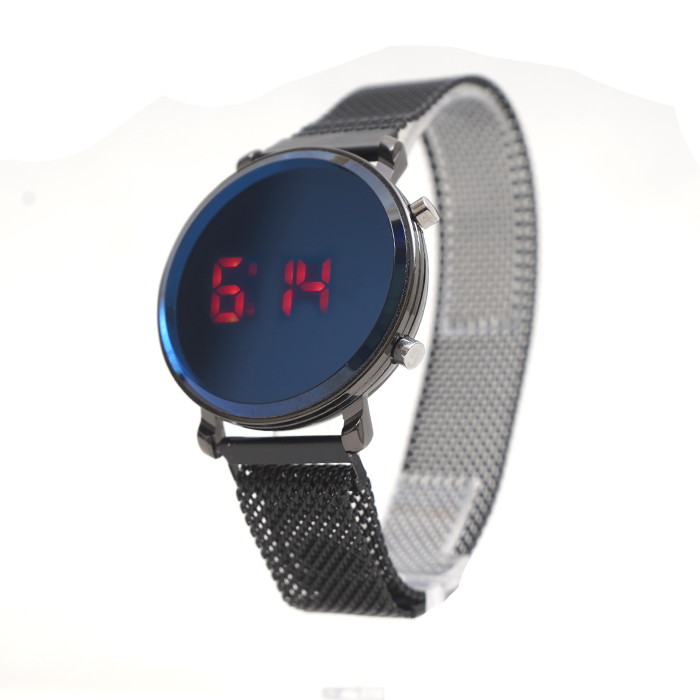 ساعت LED بند فلزی مشکی مدل Ronas