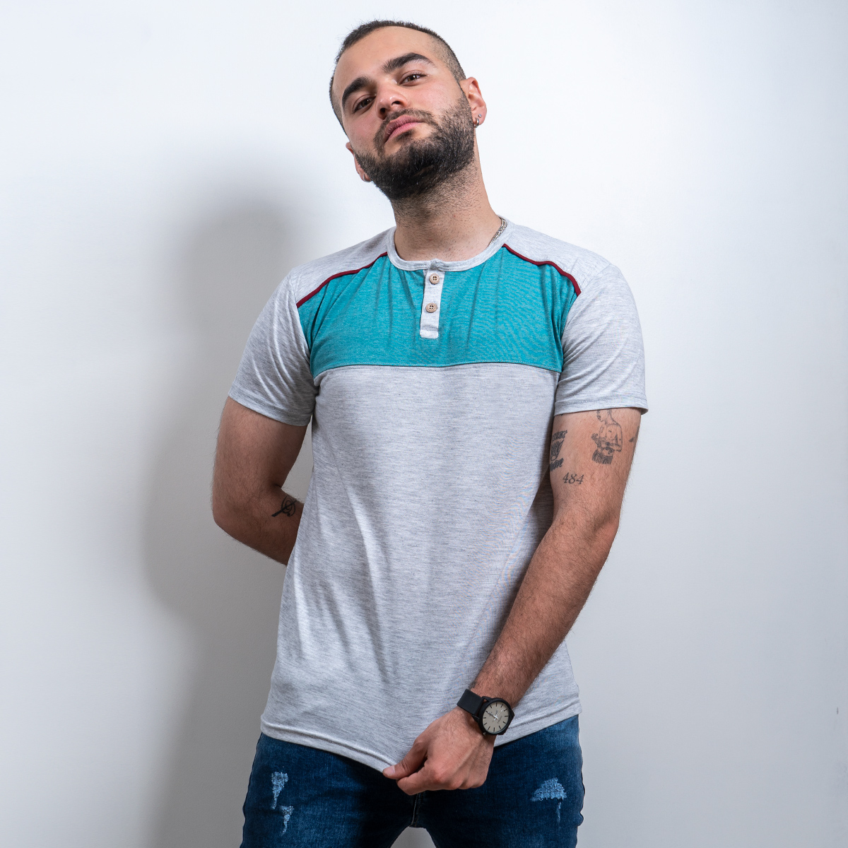 تيشرت مردانه طوسی روشن فیروزه ای مدل Ratim
