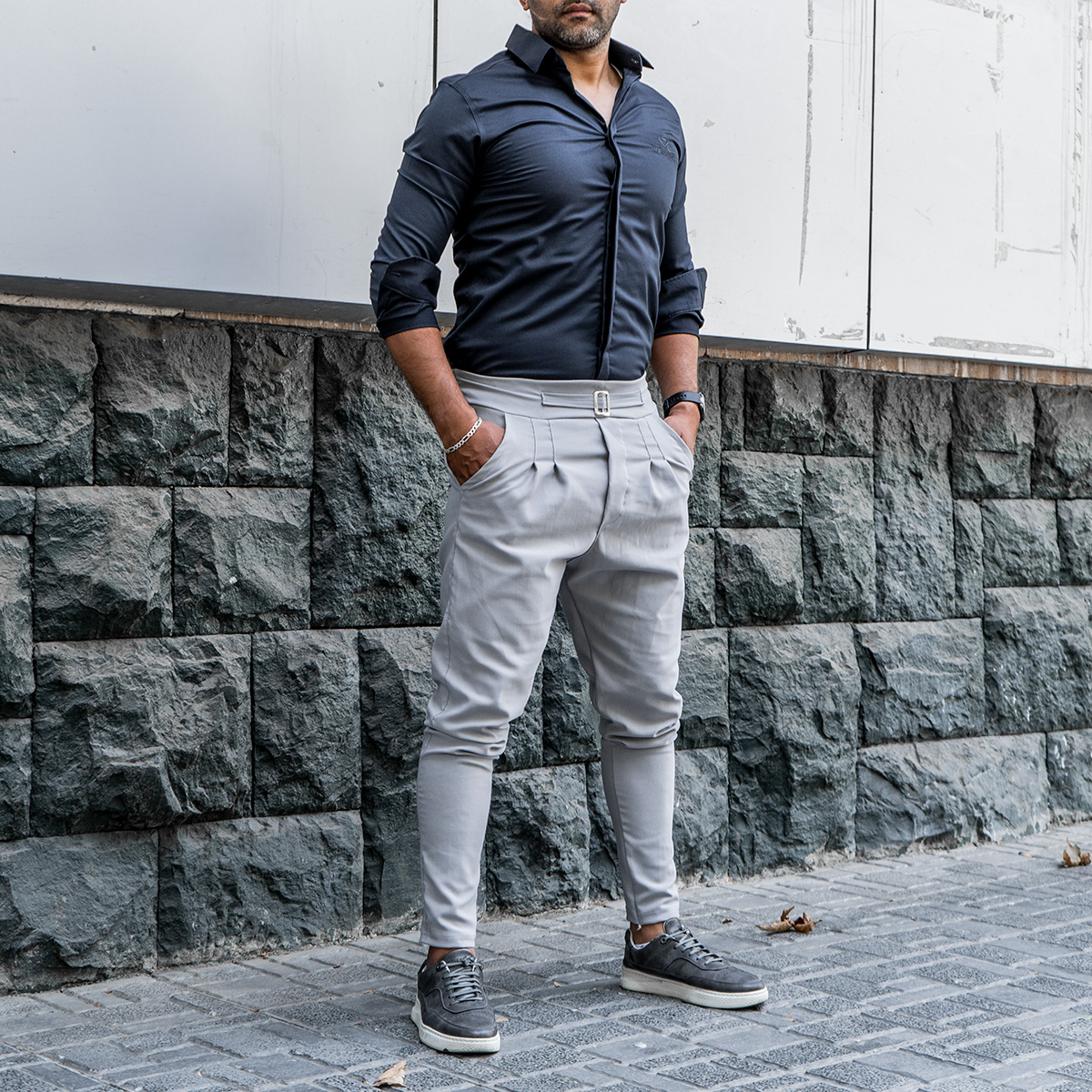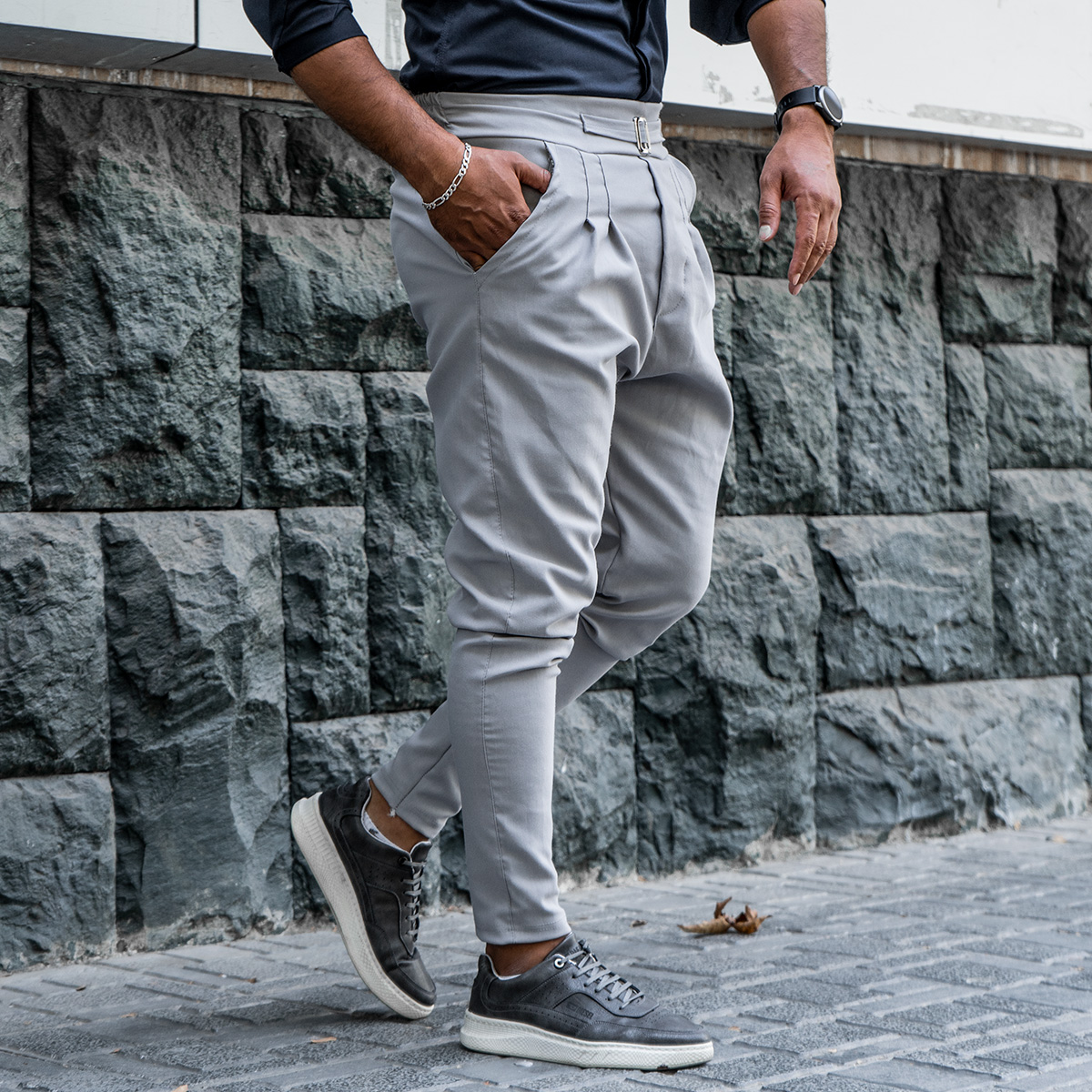 شلوار اسلش سگک دار مردانه طوسی روشن مدلPartiv