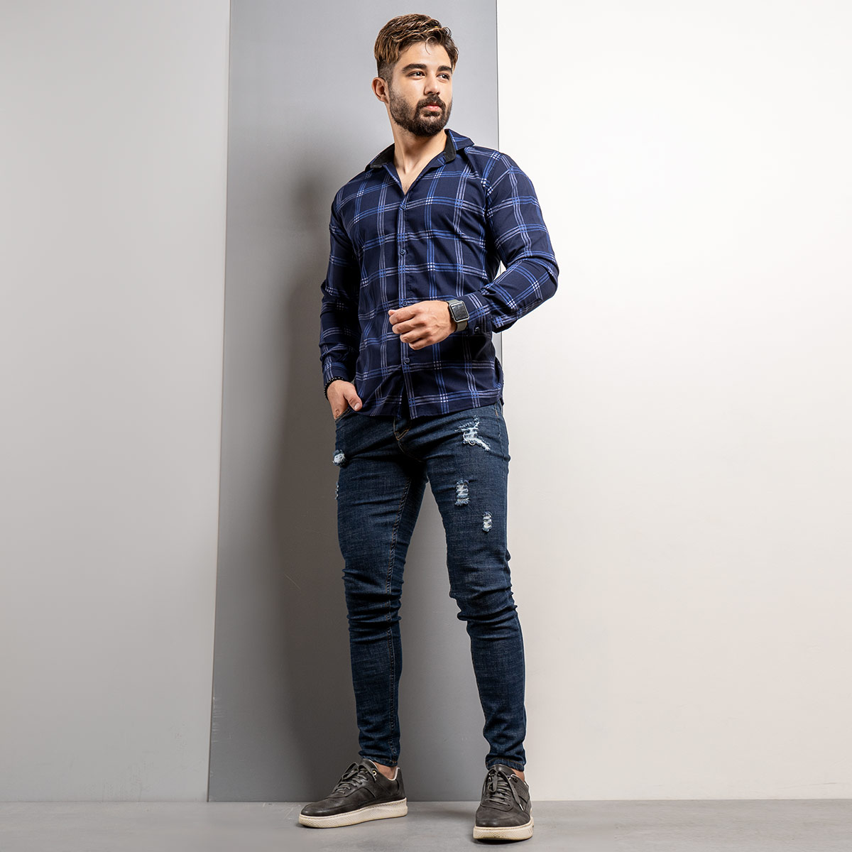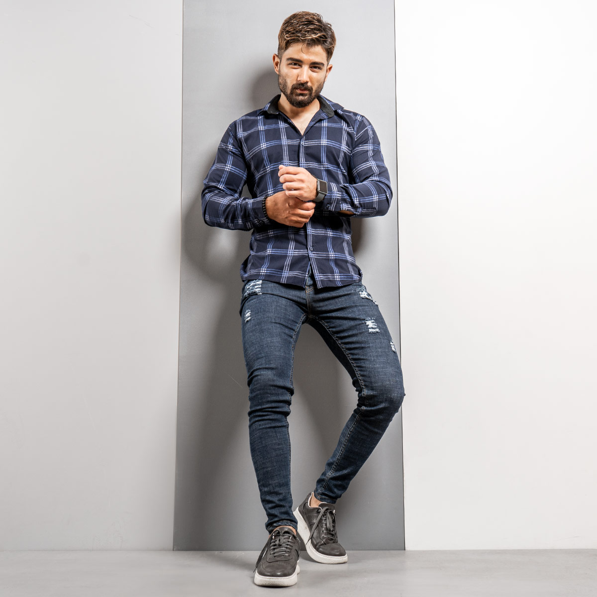 پیراهن چهارخونه سرمه‌ای مردانه مدل Siyam