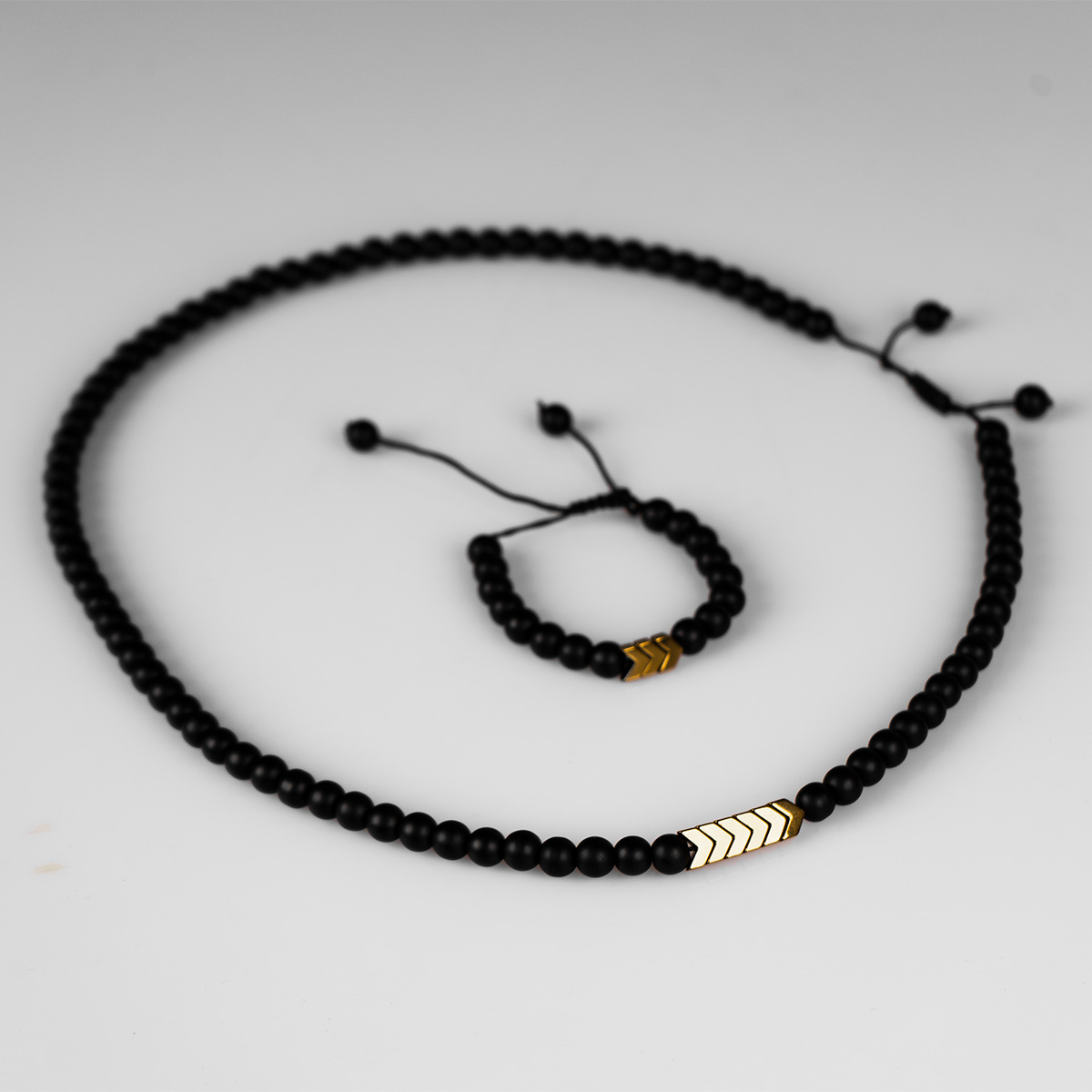 نیم ست مهره ای مشکی مدل Mancho از انواع گردنبندهای رو لباسی است که محبوبیت خاصی بین جوانان پیدا کرده است و جذابیت زیادی به استایل شما میدهد.قطر سنگها 2 میلی متر و به رنگ مشکی مات بوده و بدلیل طراحی خاص، برای استفاده روزانه و قابل ست شدن با انواع پوشش ها و مناسب برای آقایان و خانم هاست.